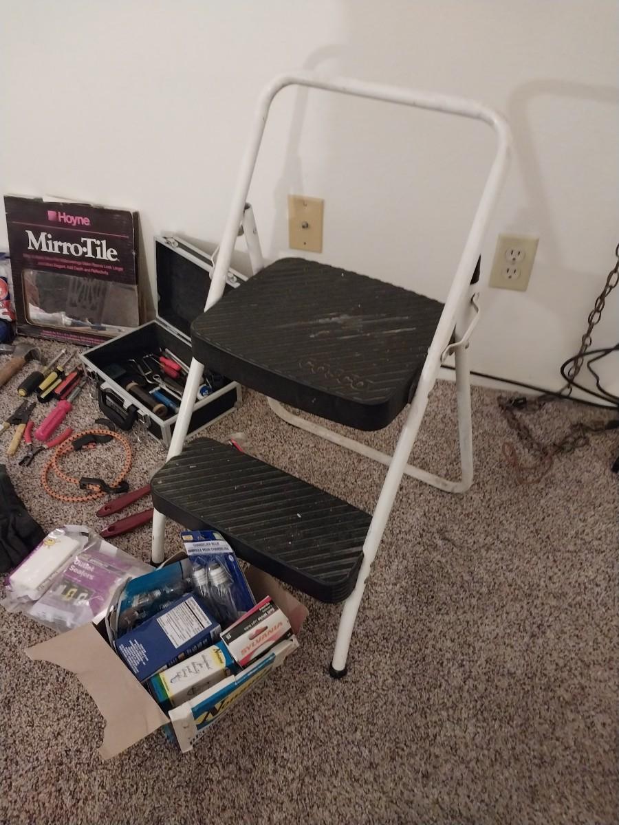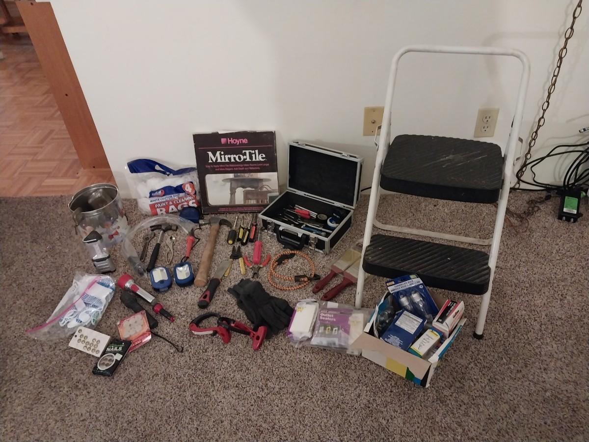 FOLDING STEP STOOL, HAND TOOLS AND HARDWARE