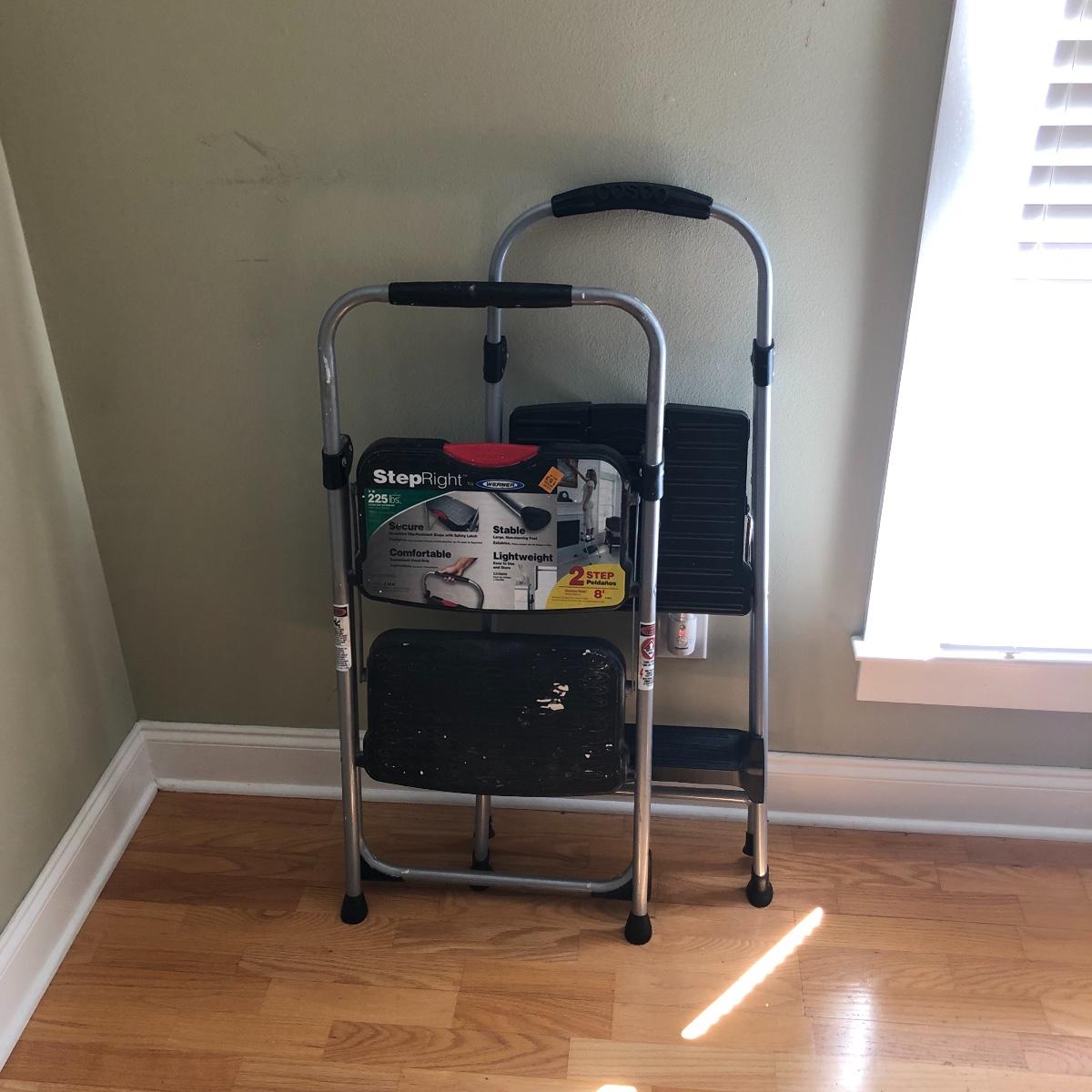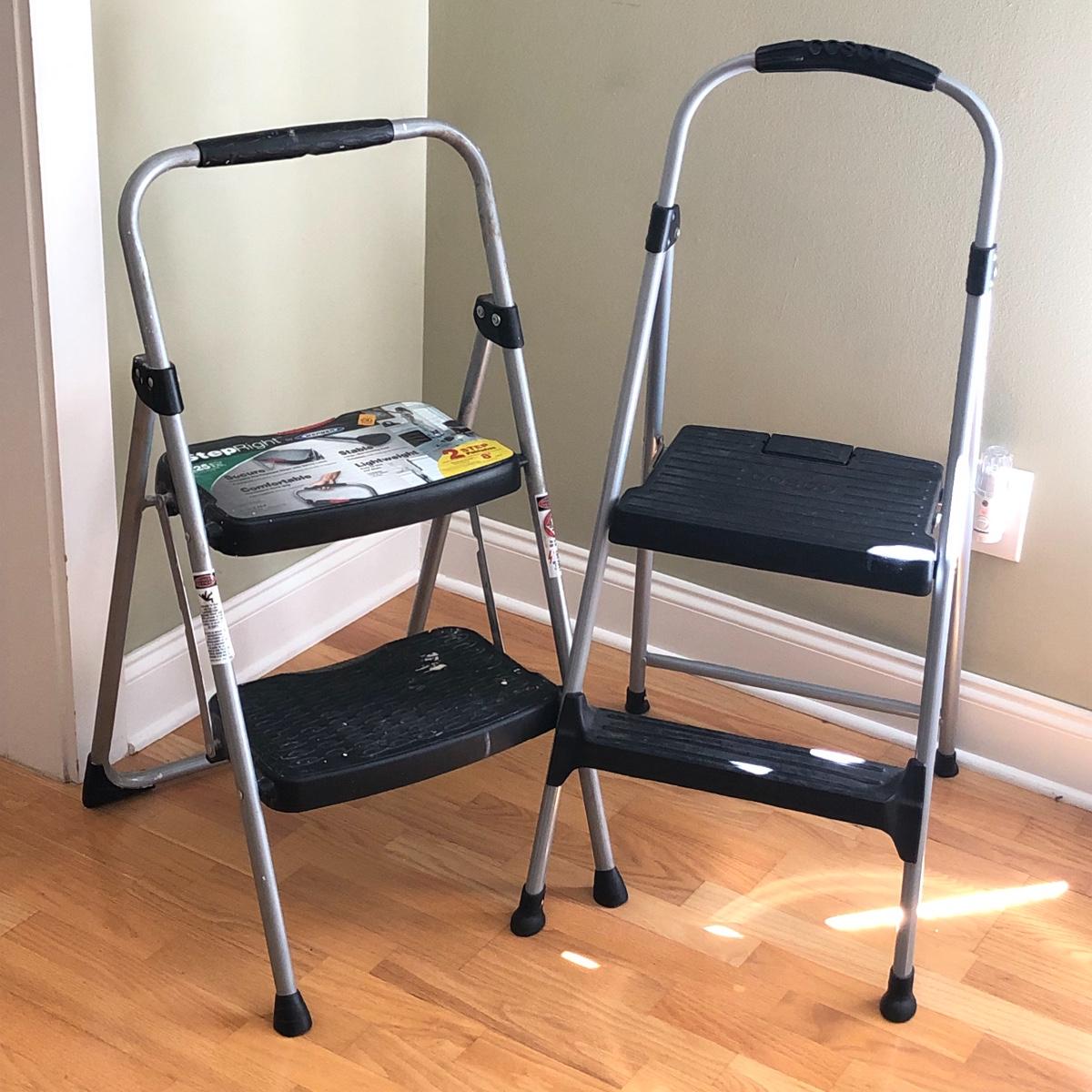 We have three step stools here, one is made by Costco, the other Step Right and the smallest set makes the third.