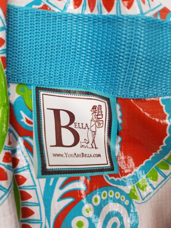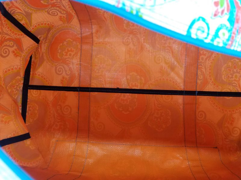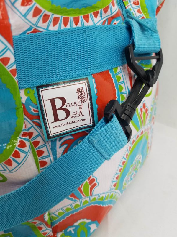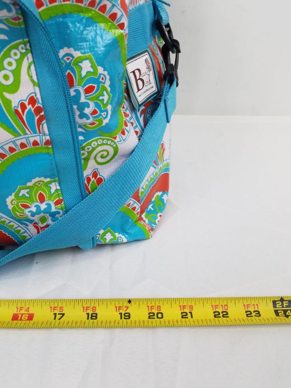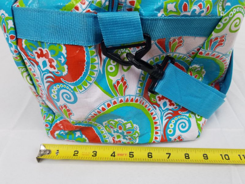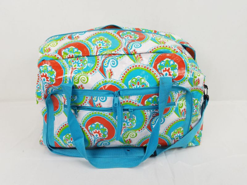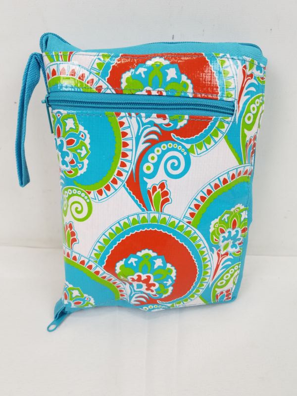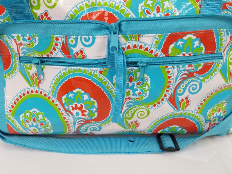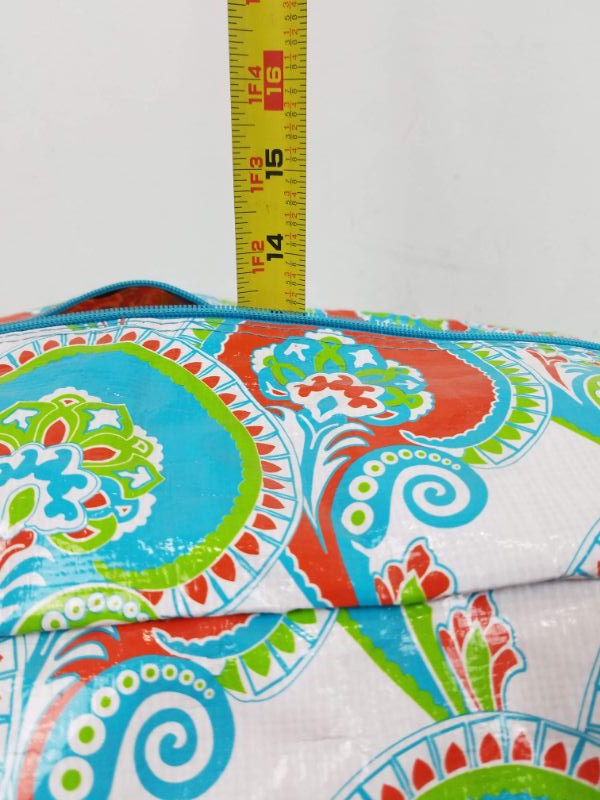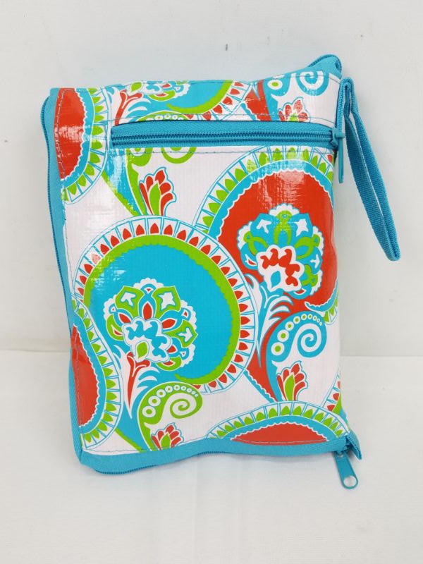 Folding Tote Bag with Zipper Closure & 2 Pockets. Turquoise, Orange, Green & White Paisleys. New Condition