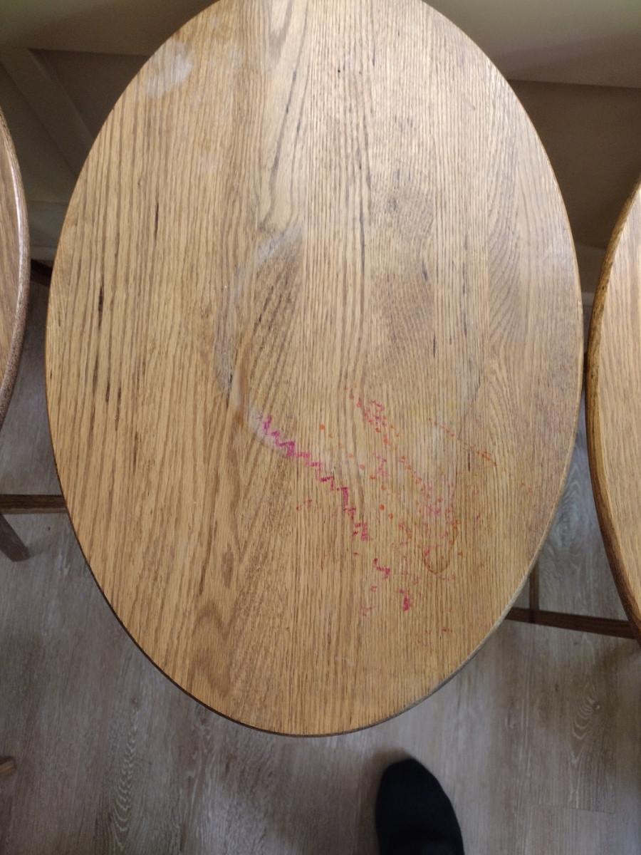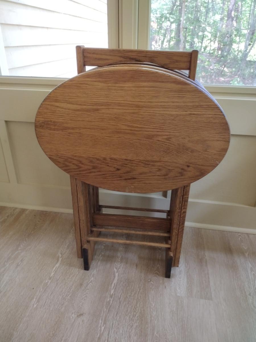Set of 4 along with the stand. One table top has some red substance on it, which we think is possibly candle wax. See pictures for more details.