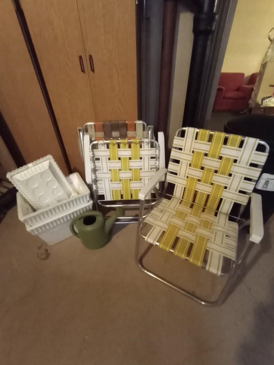 FOLDING YARD CHAIRS, STYRAFOAM COOLERS