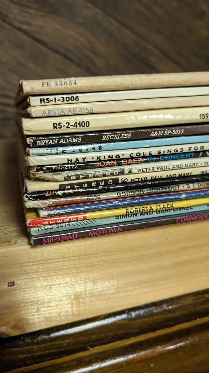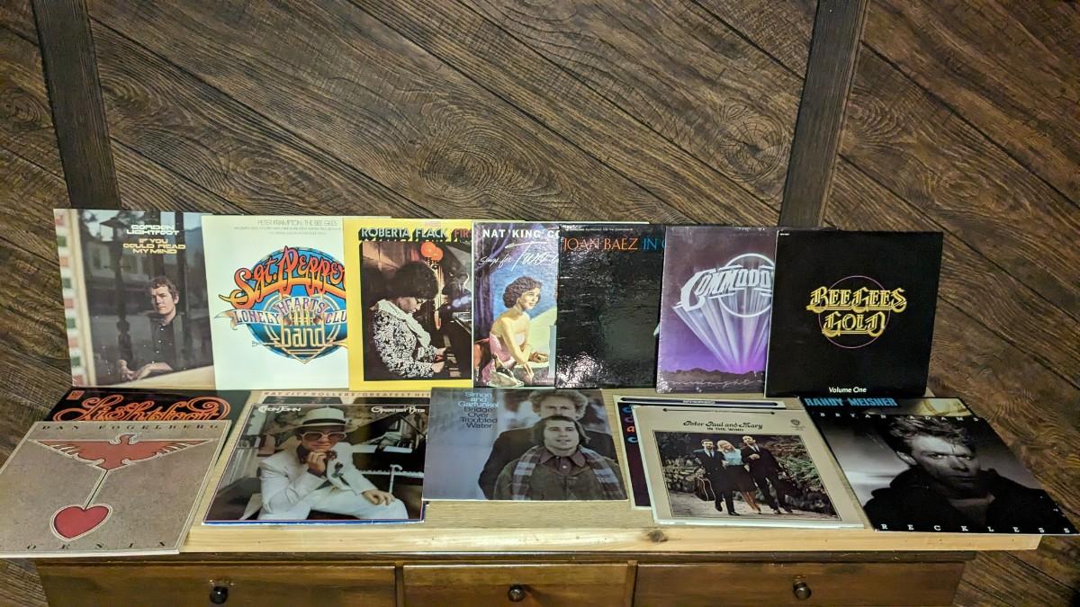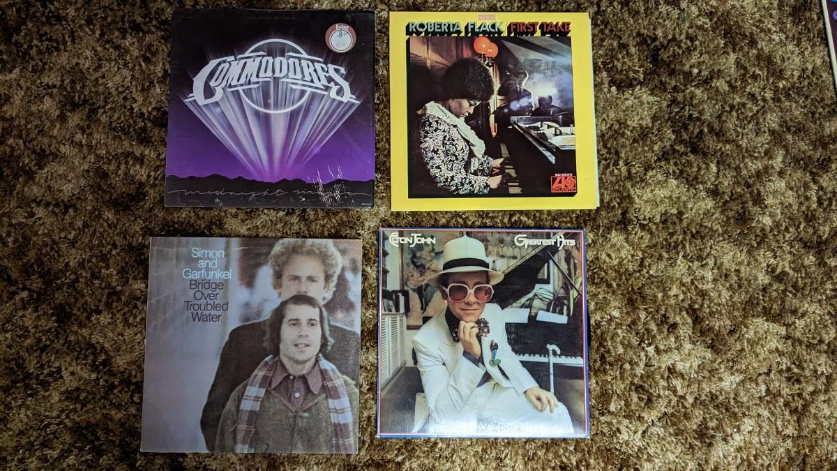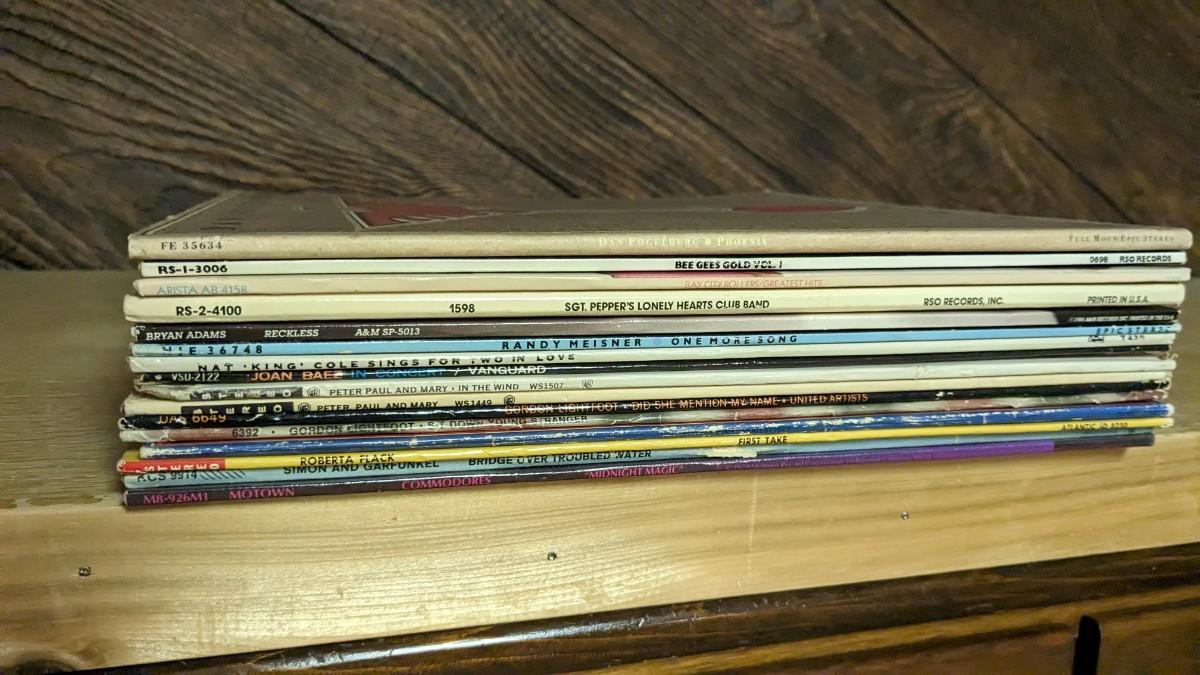 15ea, includes Dan Fogelberg, Roberta Flack, Elton John, Simon & Garfunkel, Gordon Lightfoot, Peter, Paul & Mary, Bryan Adams, Commodores, Bee Gees, Bay City Rollers, Nat King Cole, and more! All sleeves are in good shape. basement