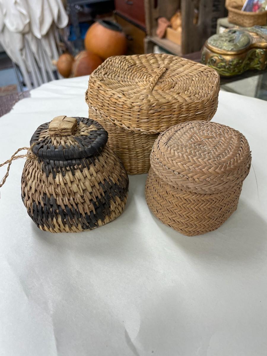 Folk Art Baskets Smaller Lot of 3