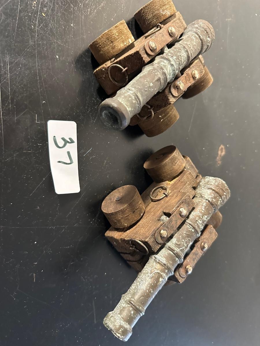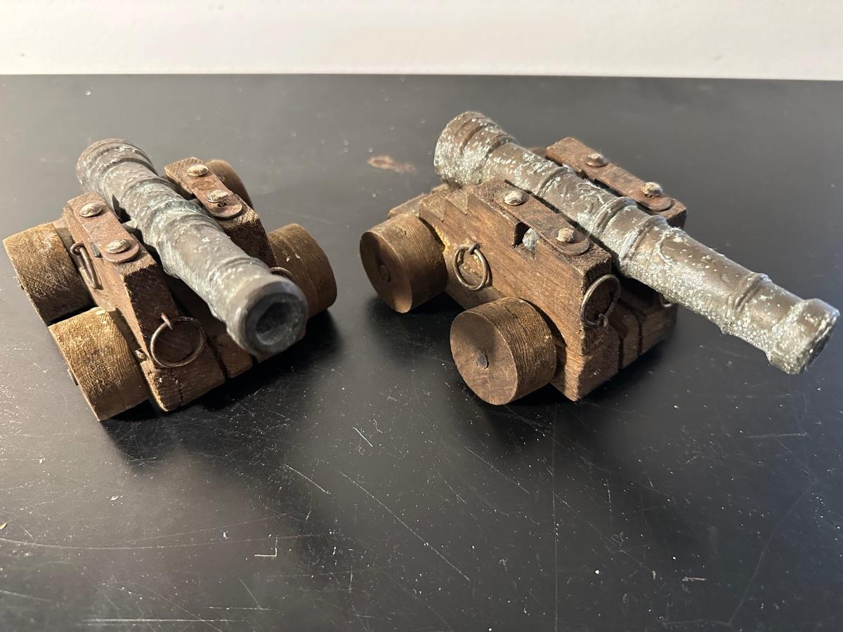 FOLK ART CANNON BOOK END PAIR, AS PICTURE