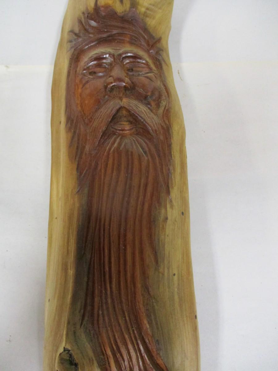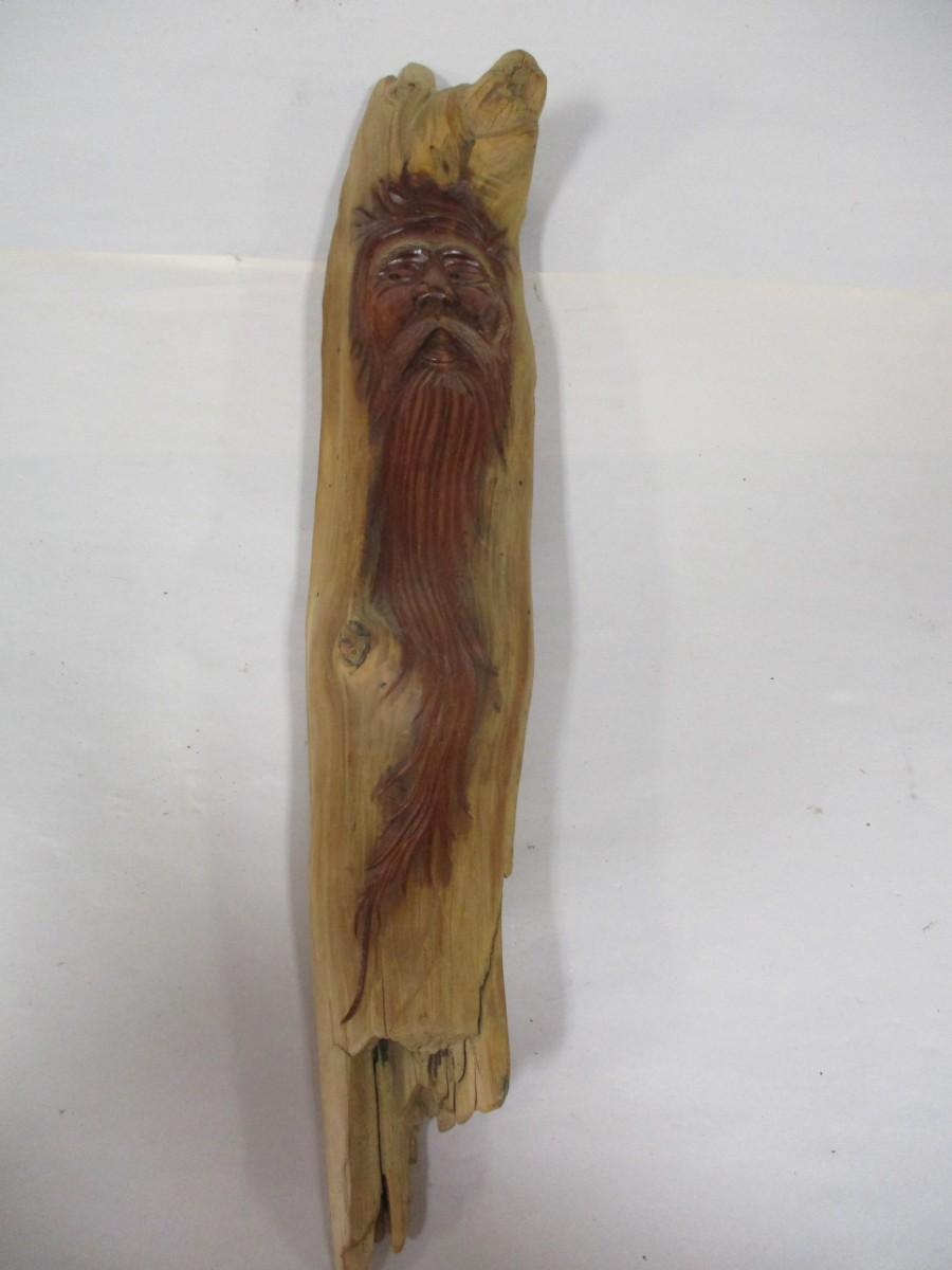 Folk Art Carved Cedar Wood Spirit Signed