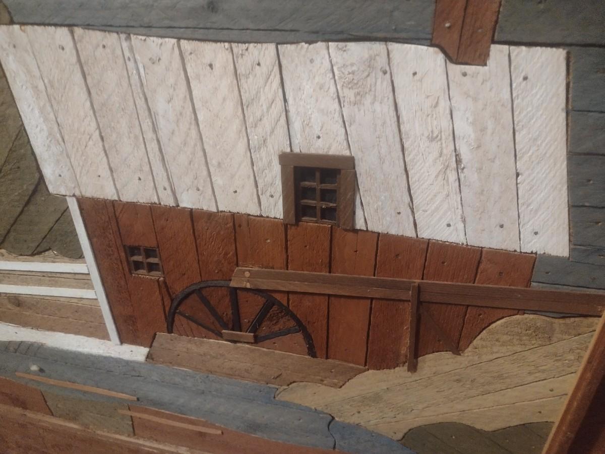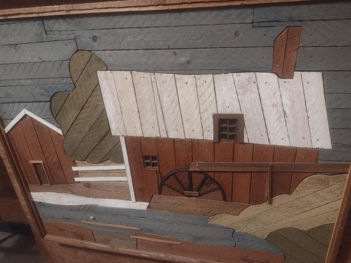Folk Art Framed Wood Pieces Barn and Grist Mill