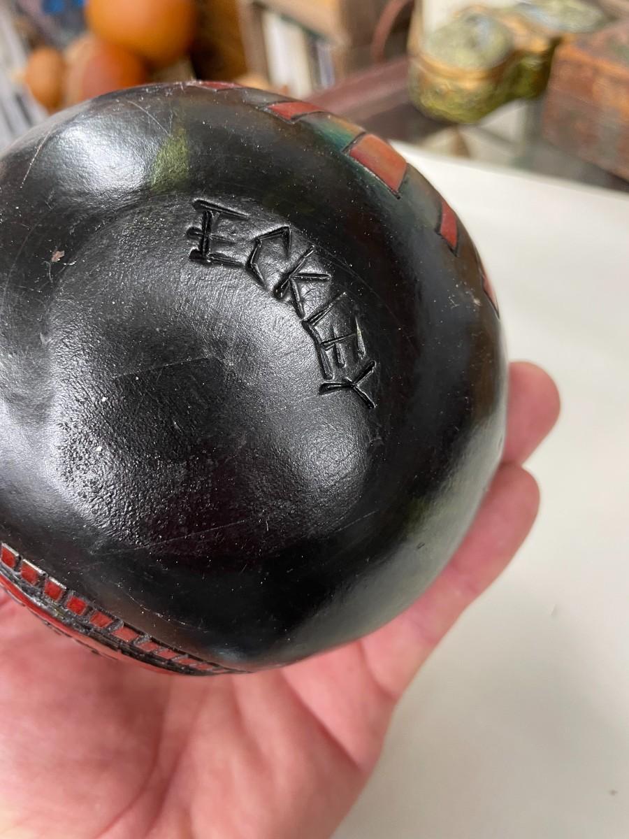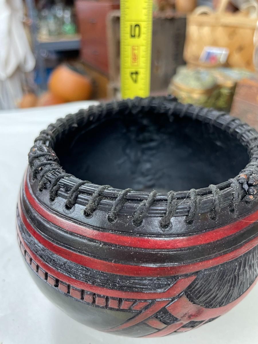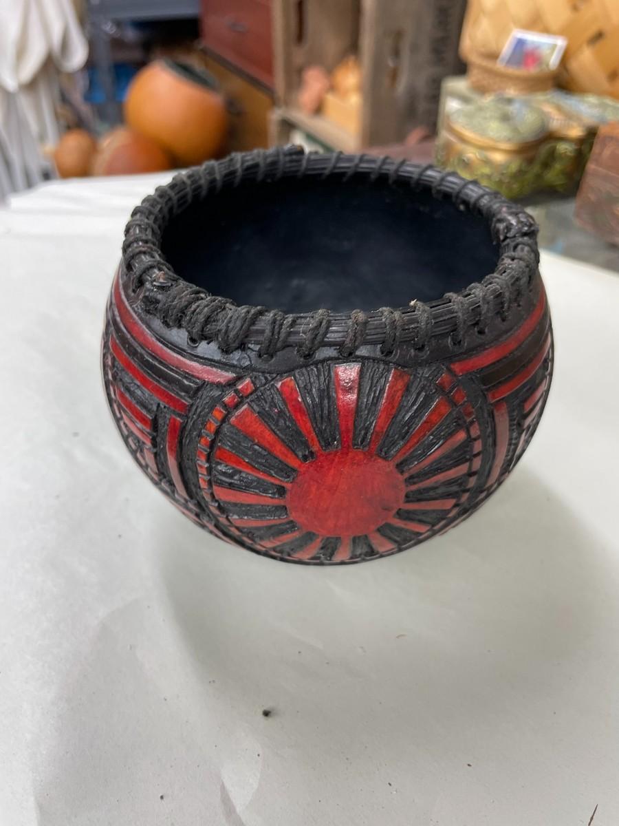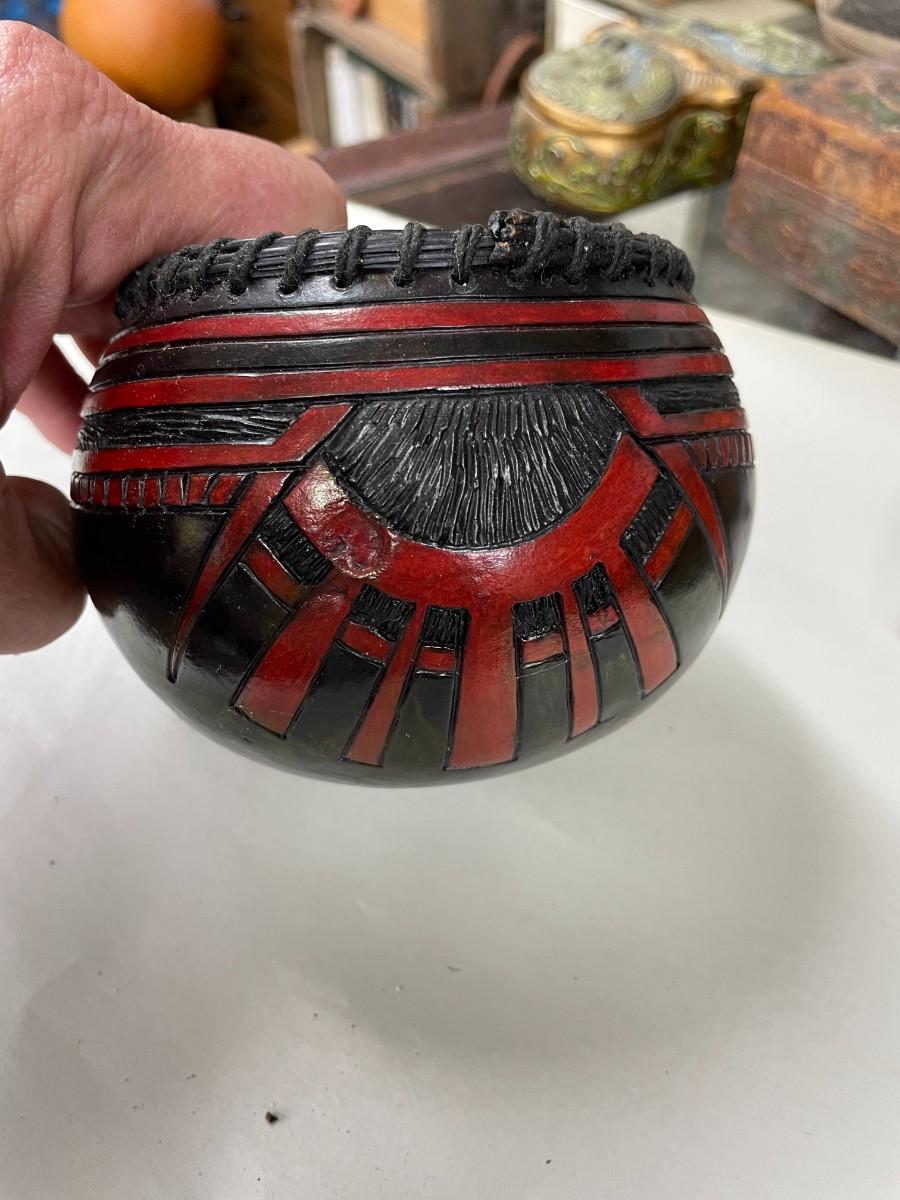Folk Art Gourd Art Basket Signed Eckley