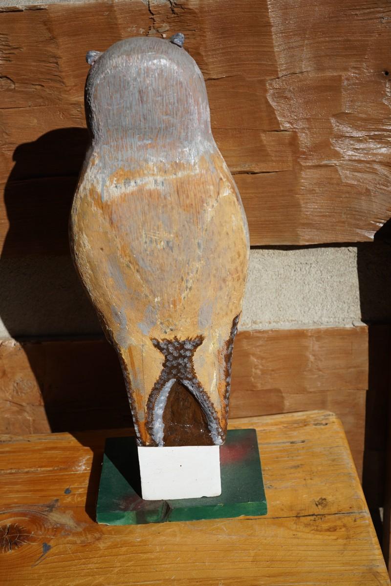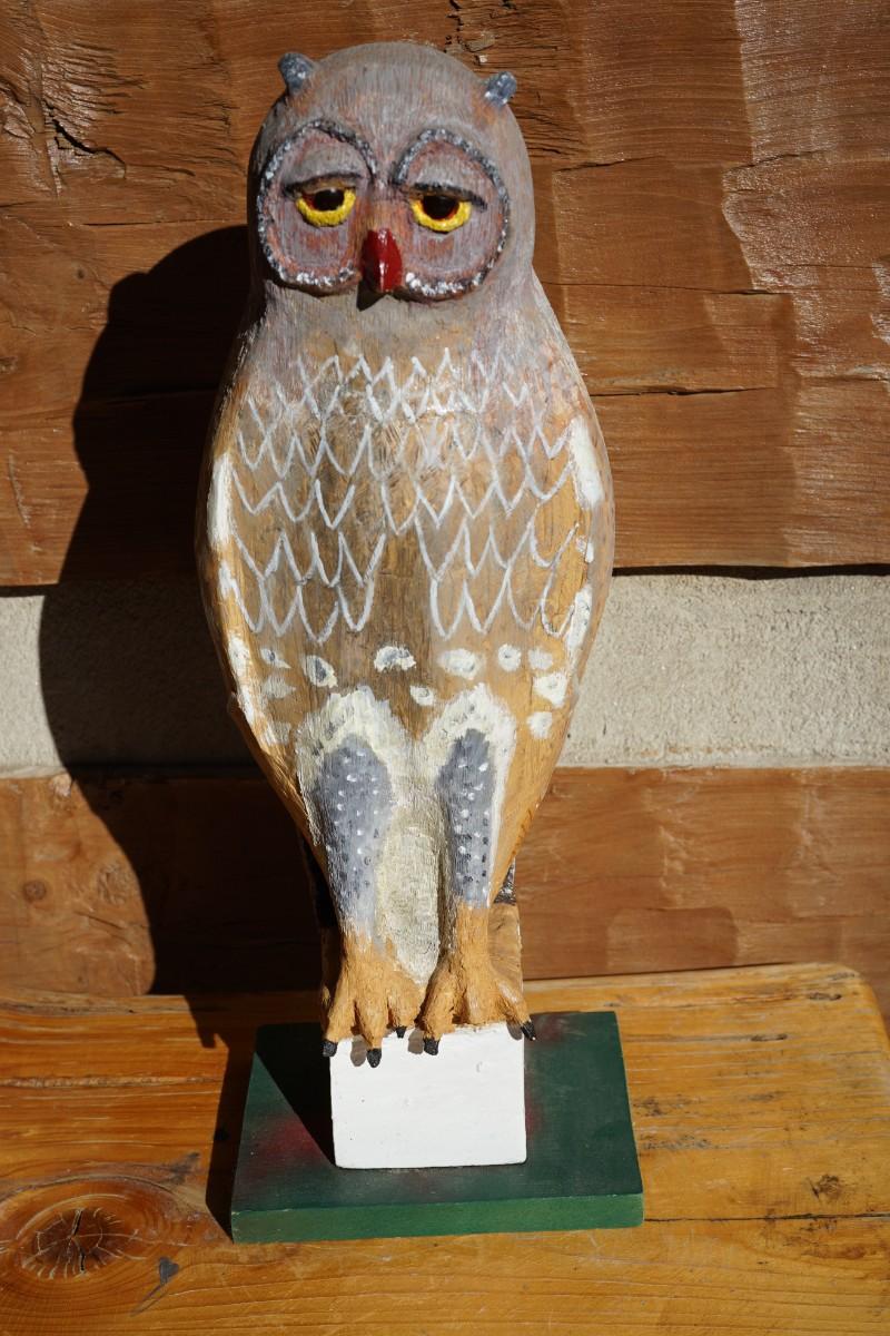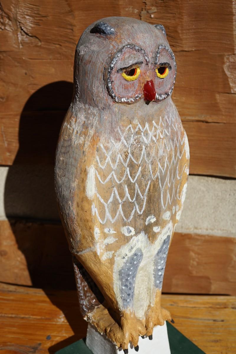 FOLK ART HAND CARVED WOOD & PAINTED GREAT HORNED OWL