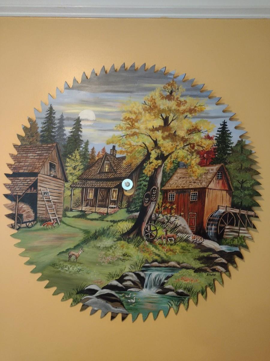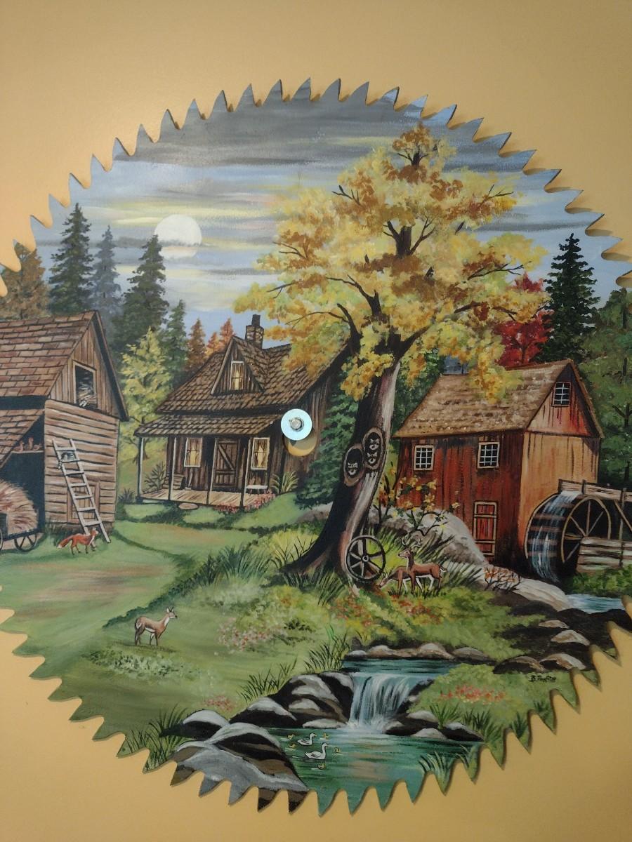 Folk Art Hand Painted Saw Blade Signed by Artist 28"