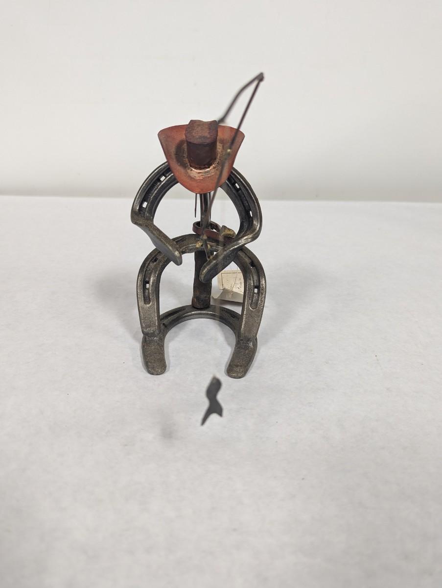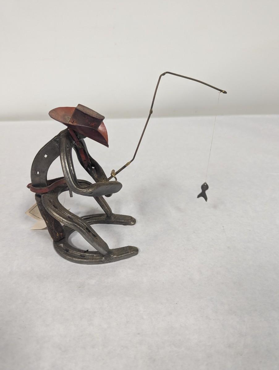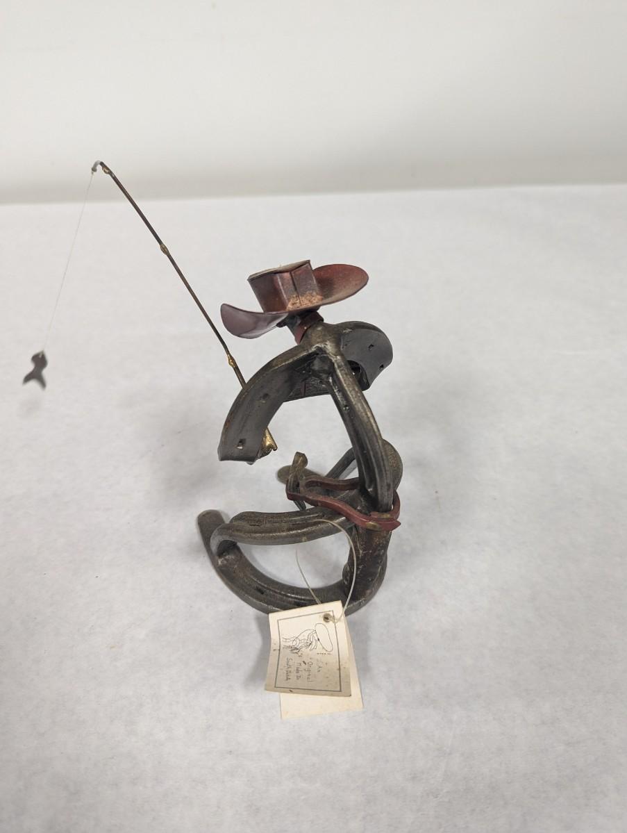 Folk Art Horseshoe Cowboy Fishing Artist R. Newman