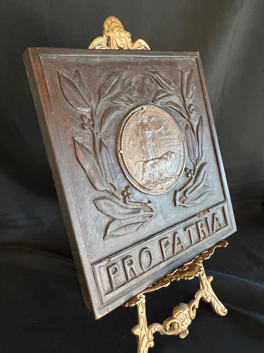 Folk Art Plaque w a Memorial Bronze Medal PROPATRIA
