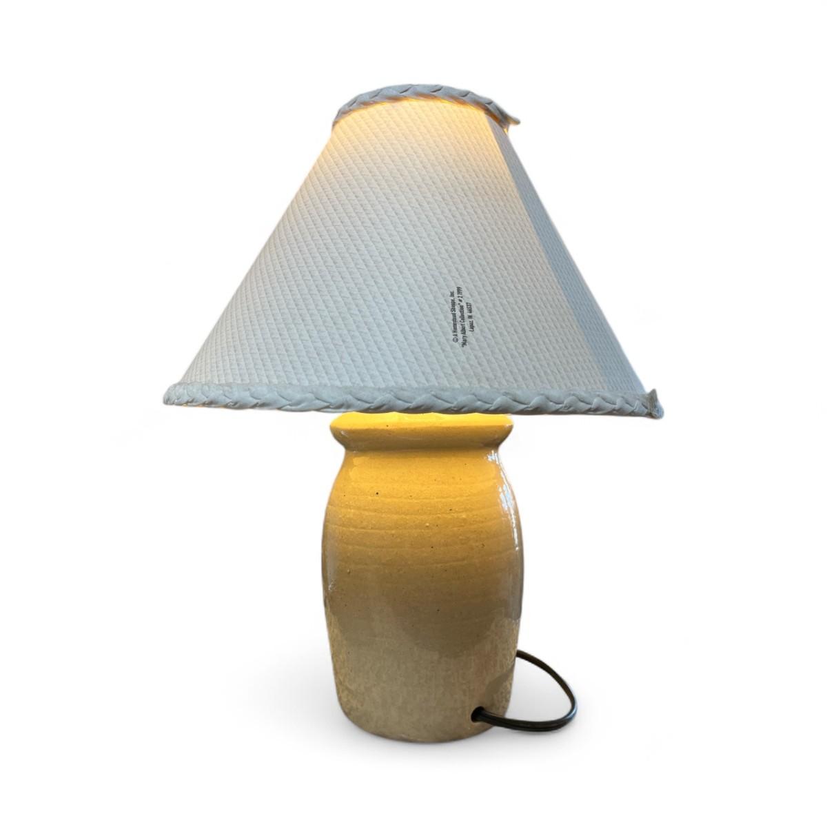Folk Art Pottery Table Lamp with a Basket of Apples Design on the Base
