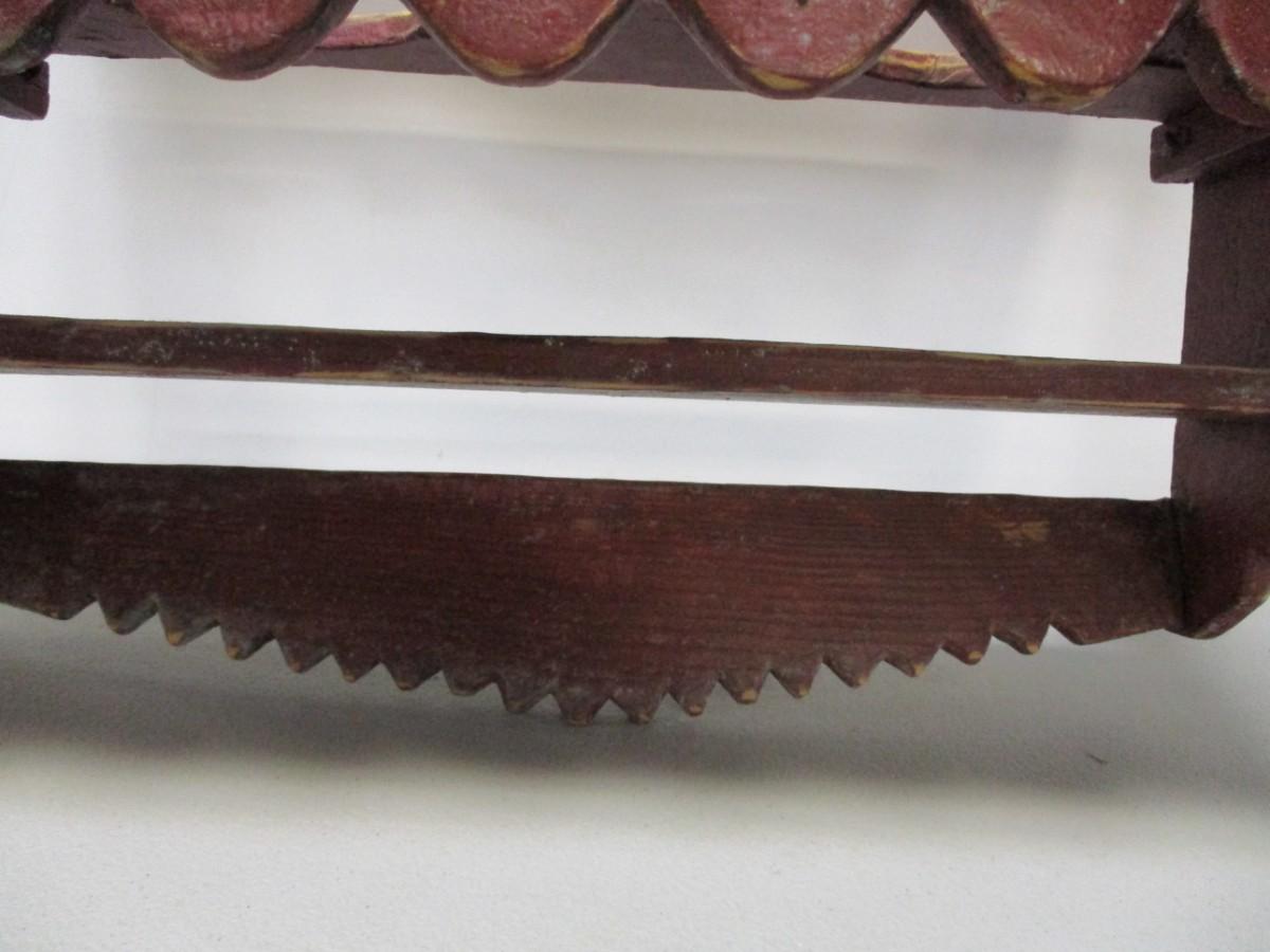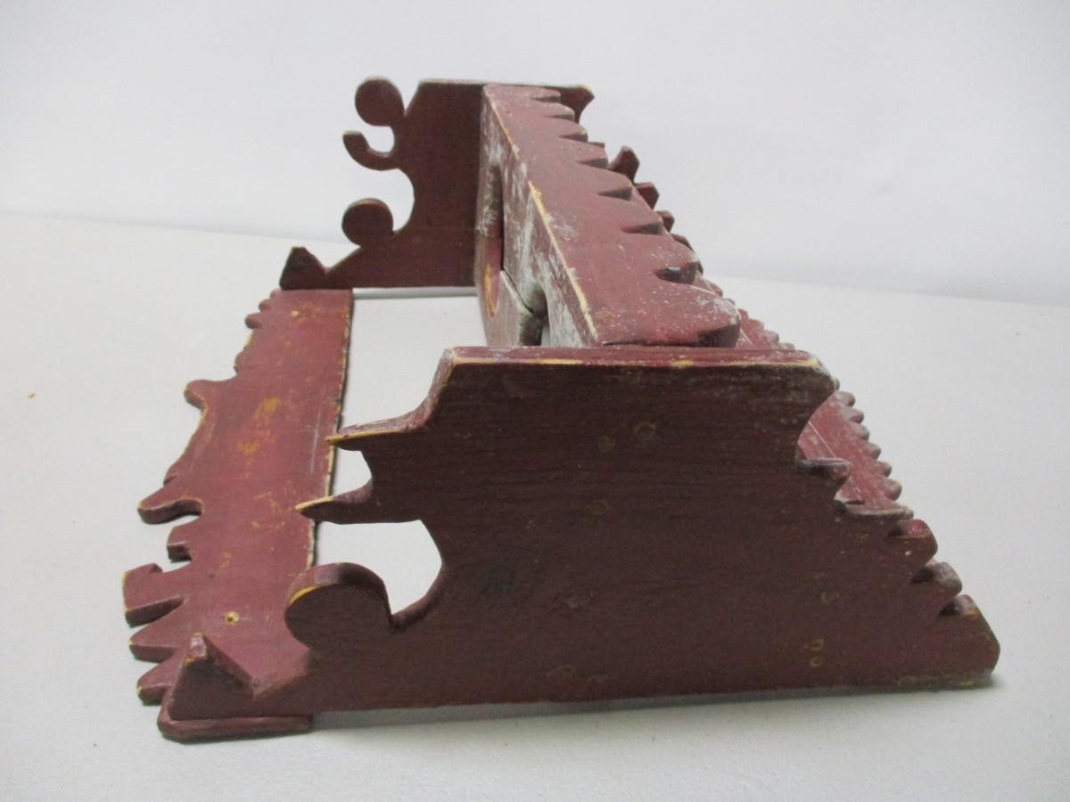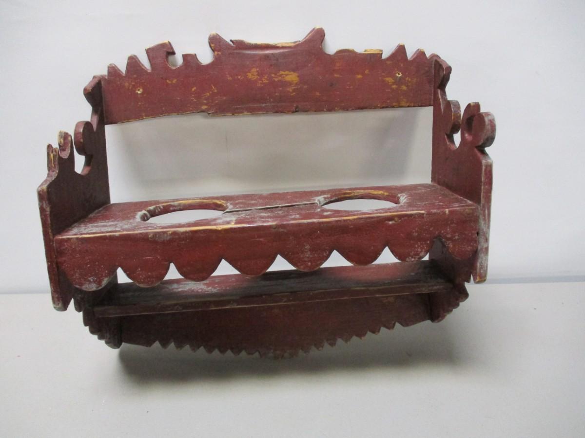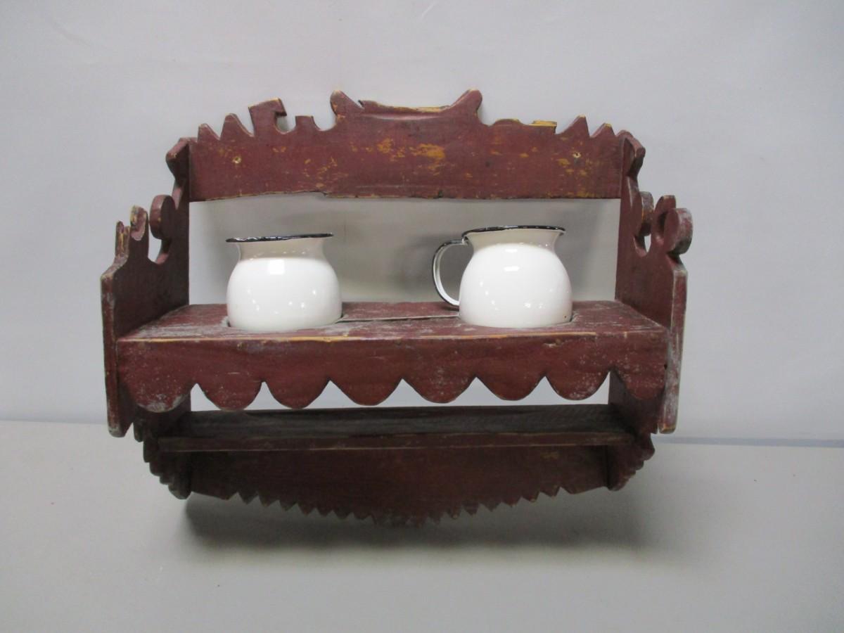 Folk Art Primitive Water Shelf Oxblood Paint & 2 Water Enamel Jugs Third party shipping only available i.e. UPS Store, Frontier, etc. Auction house will not personally pack and ship this item.