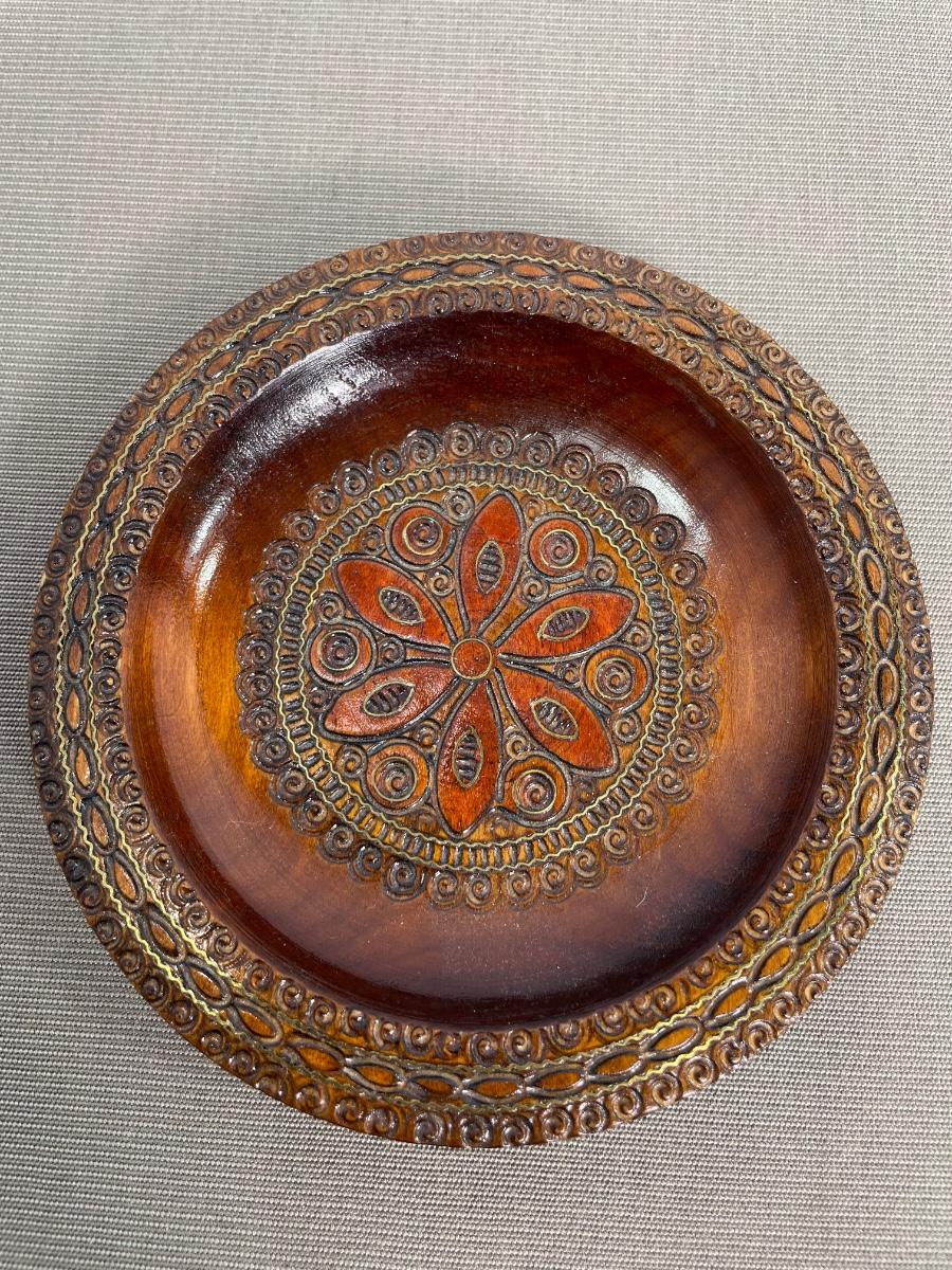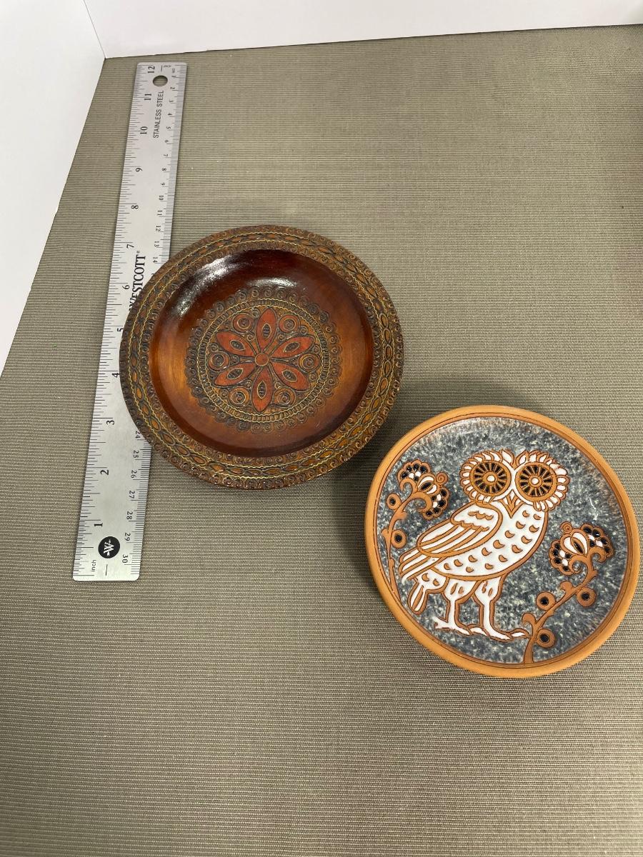 Folk Art Tolled Plate and Bonis Pottery Owl Plate