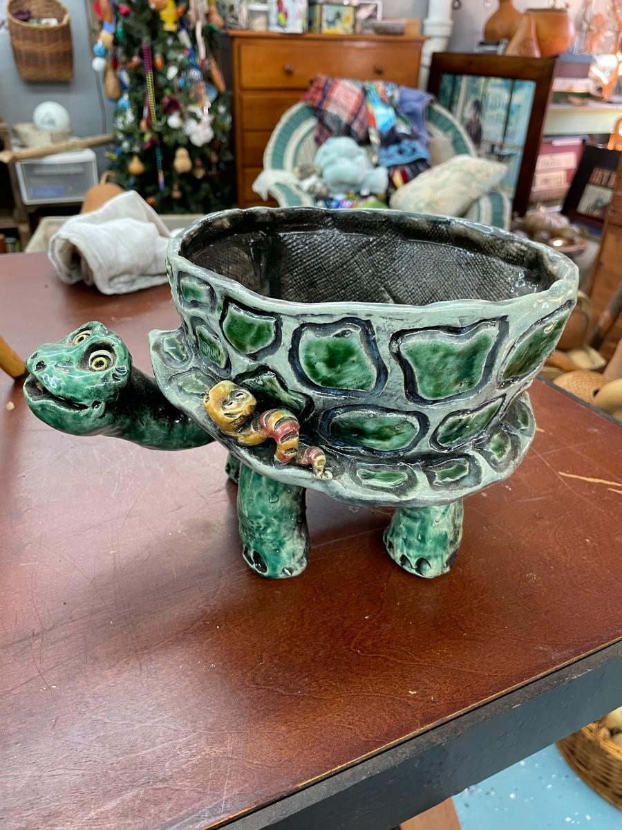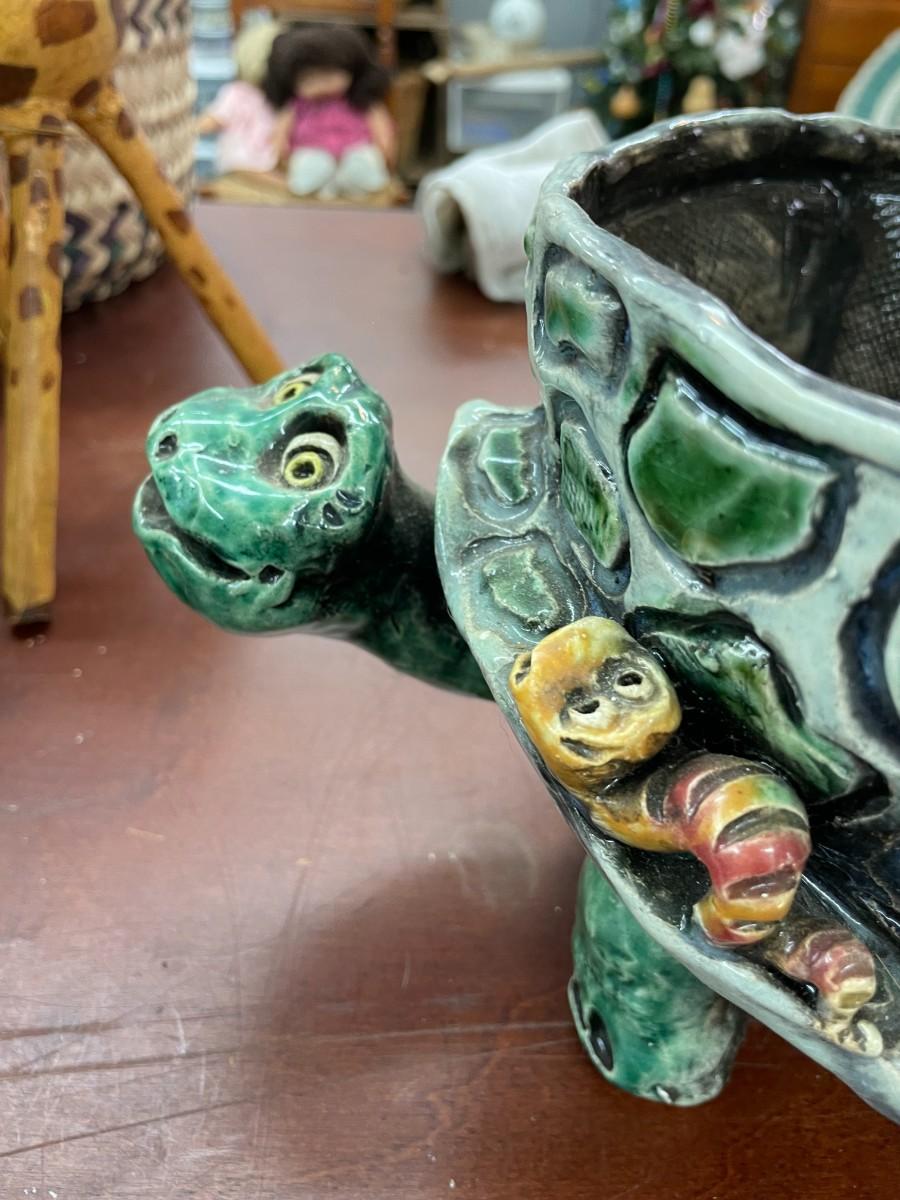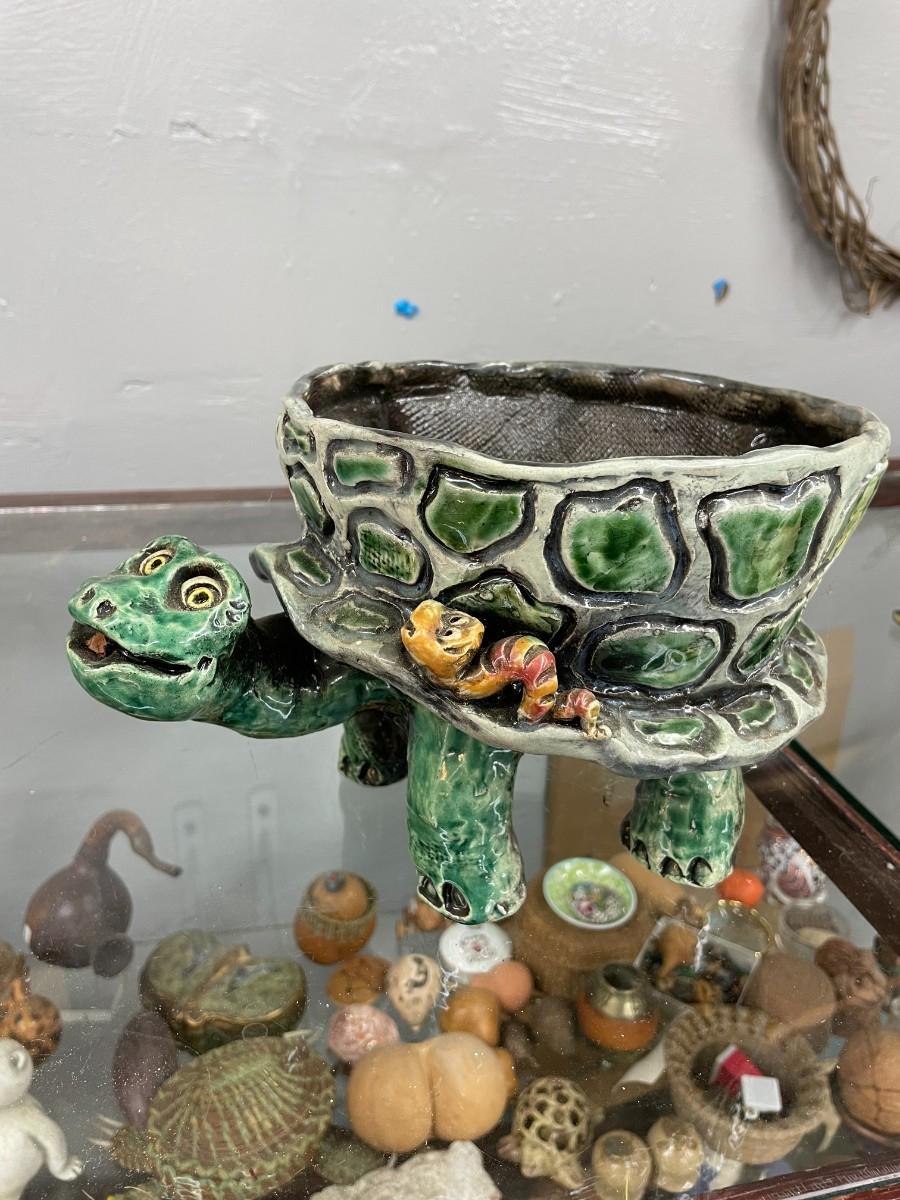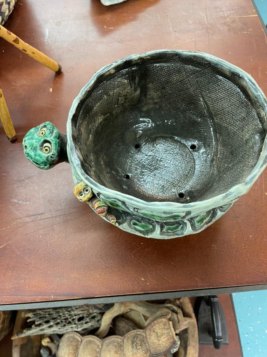 Folk Art Turtle Pottery Signed DABZ '03