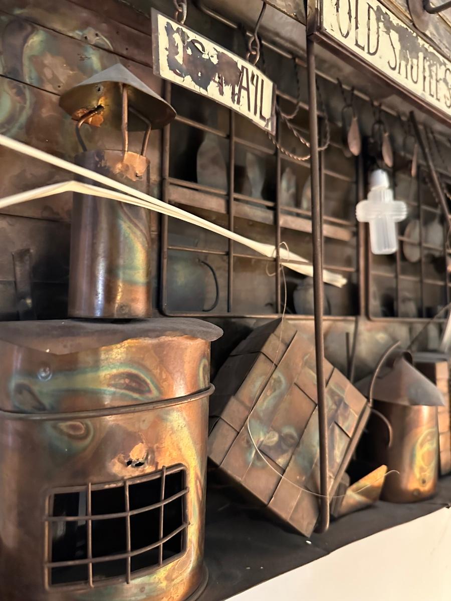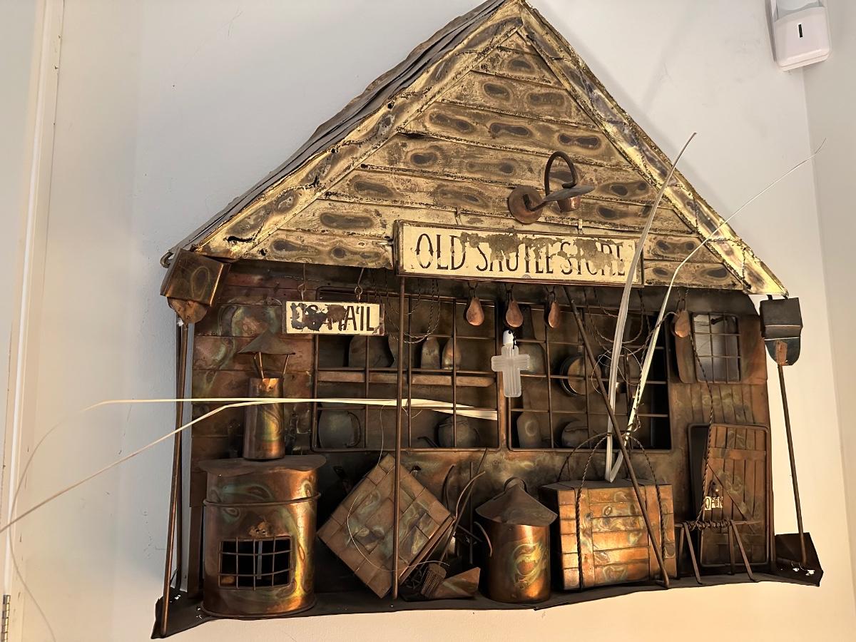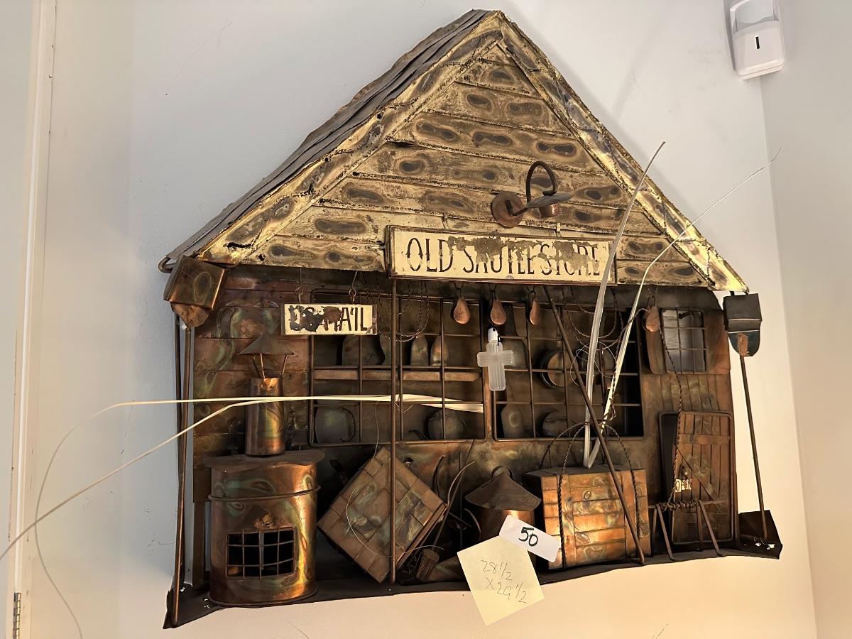FOLK ART WALL HANGING, GENERAL STORE, 28 1/2 X 29 1/2 AS PICTURED