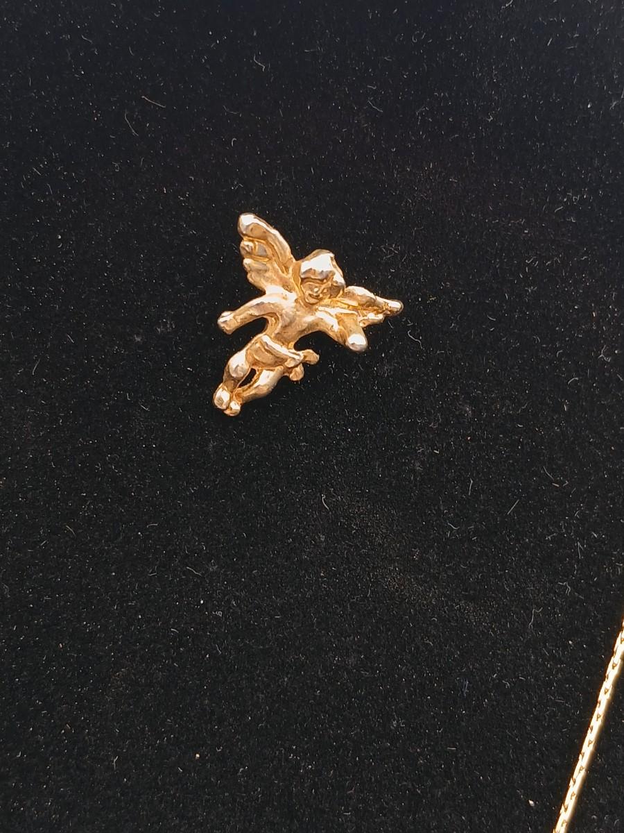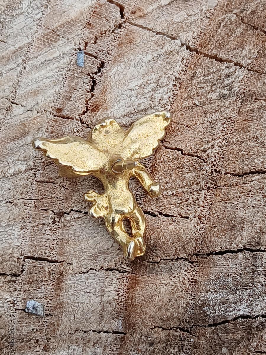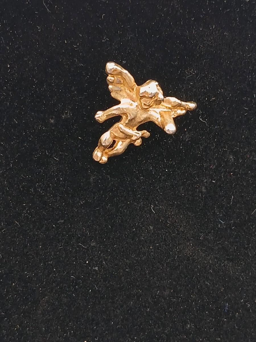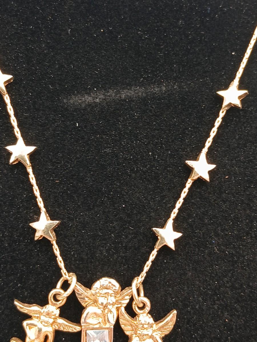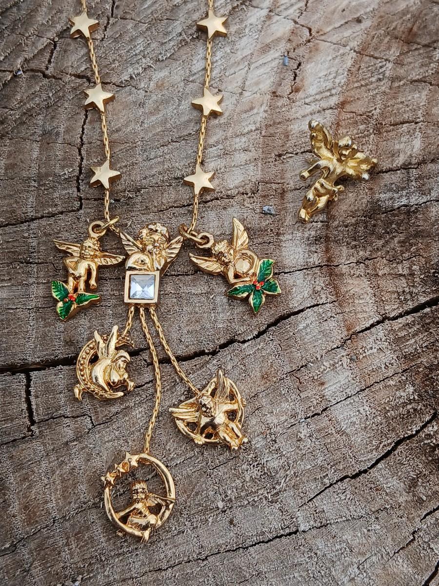 Folly like Cherub moon & stars Dangle / Charm necklace with gemstone like center - unsigned with angel pin