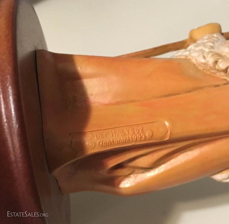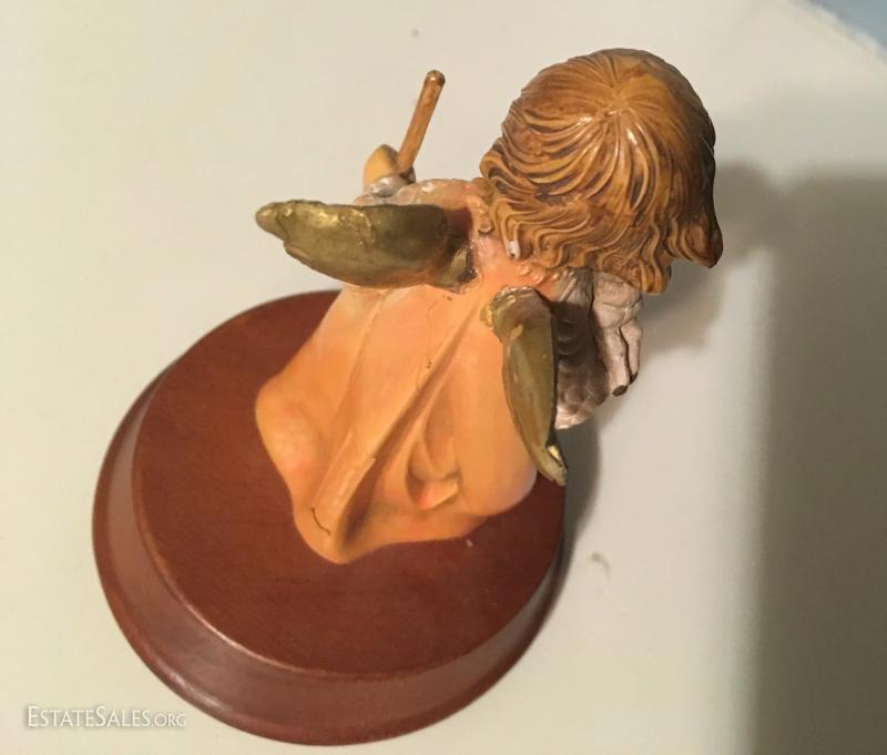 This figurine sets on a music box base. Wings, at one point, broke, and were glued back on. Shown in pictures.
