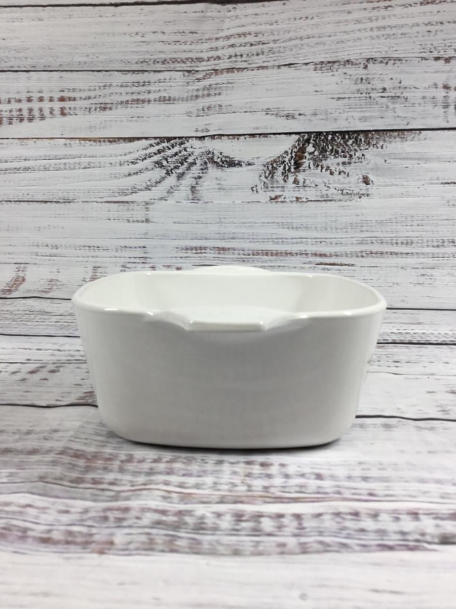 Made in the USA. About 3” tall and 4” wide. Scratches on the bottom.