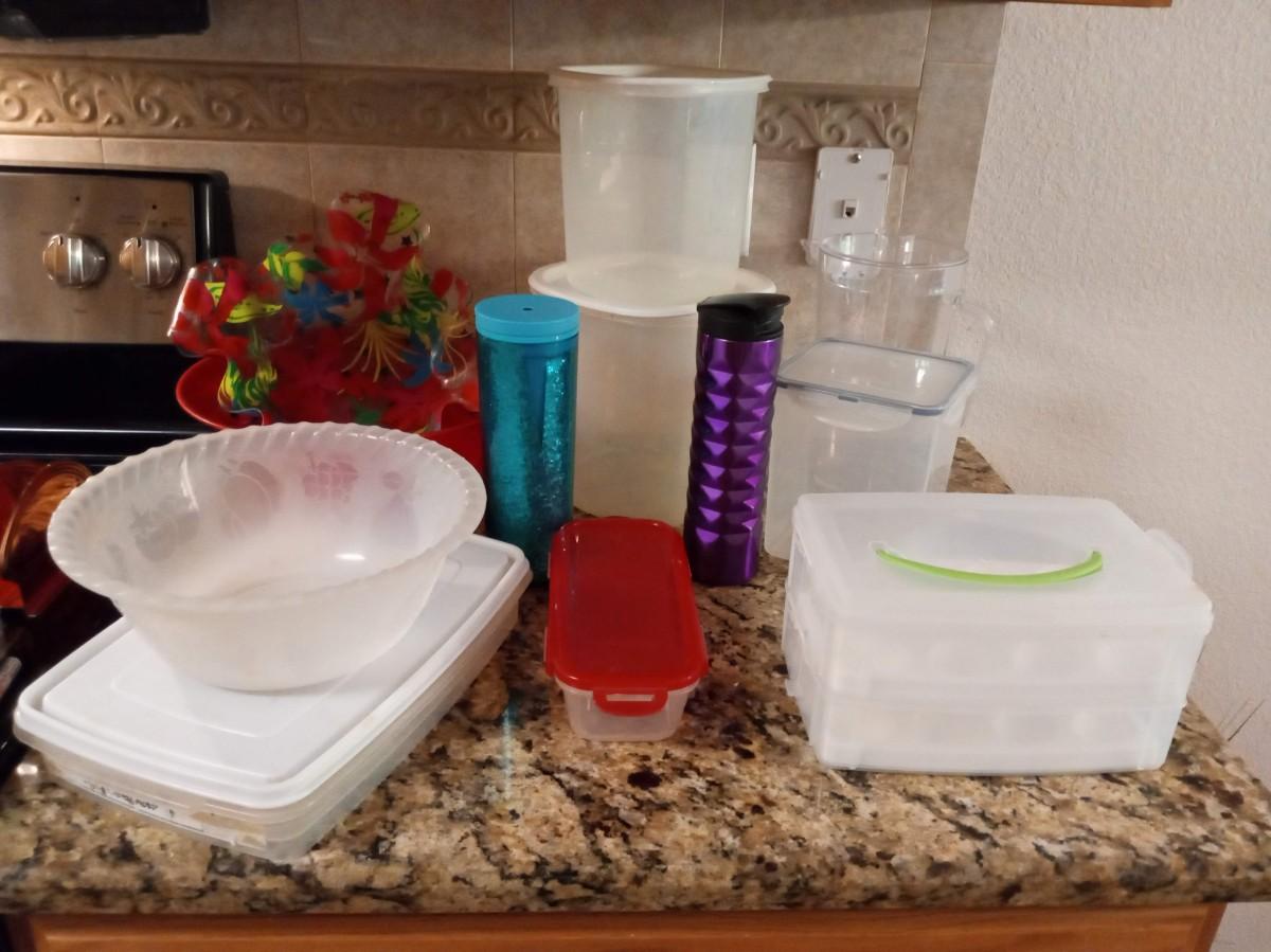FOOD STORAGE CONTAINERS, TRAVEL MUGS AND PLASTIC BOWLS