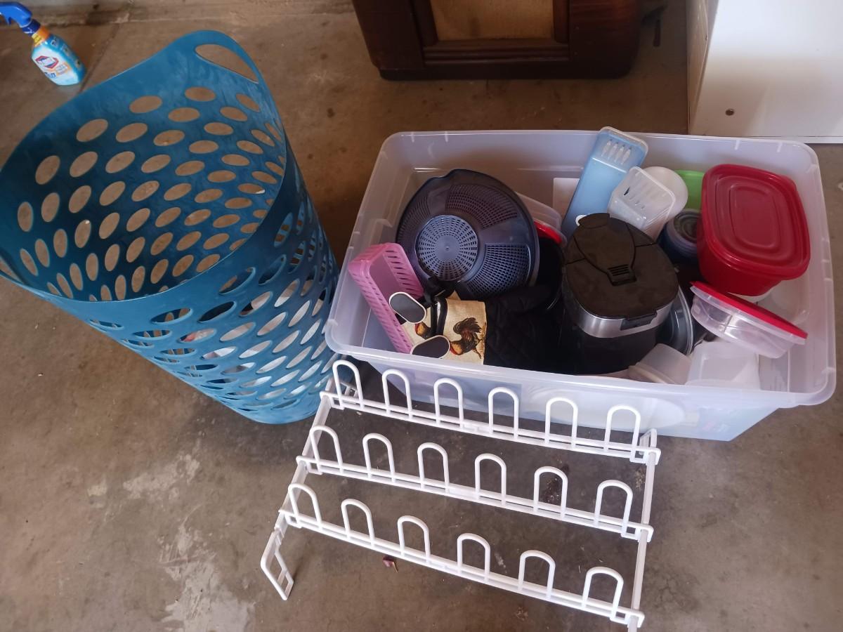 FOOD STORAGE CONTAINERS, LAUNDRY BASKET AND SHOE ORGANIZER