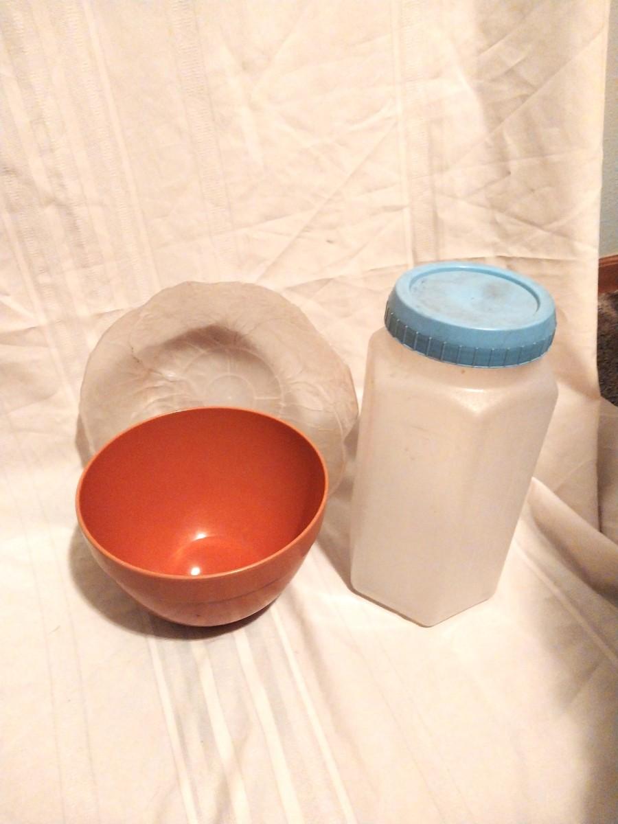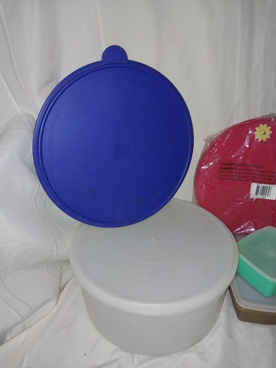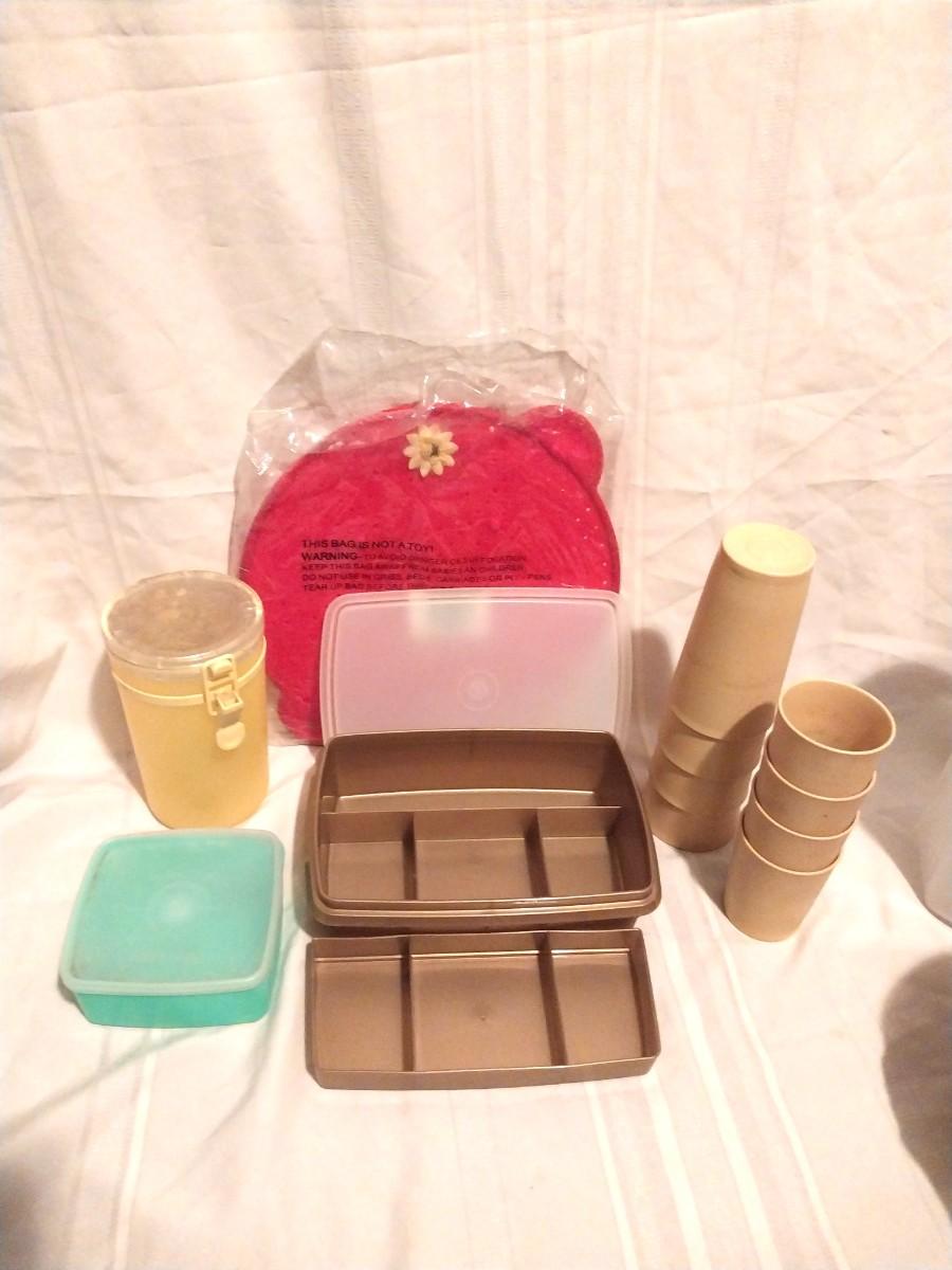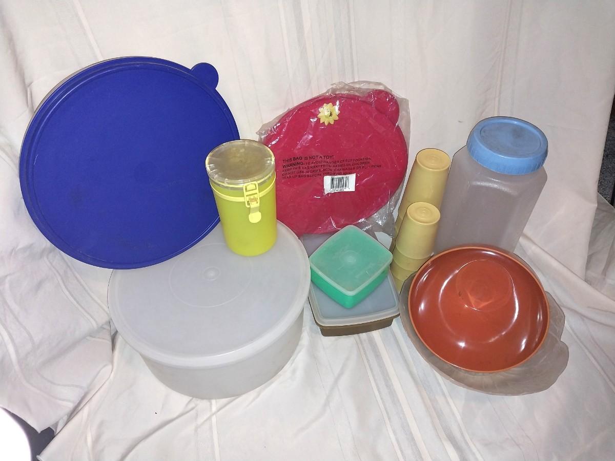 FOOD STORAGE CONTAINERS -TUPPERWARE CUPS-STRAINER LID AND BOWLS