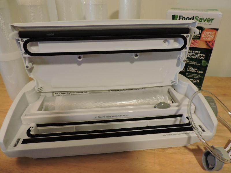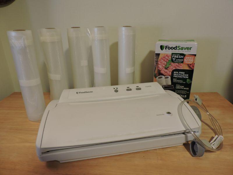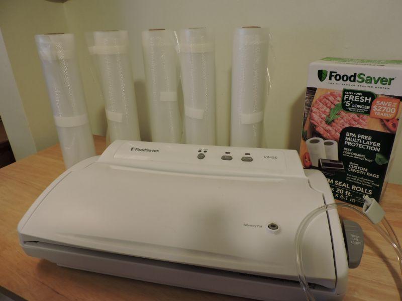 Foodsaver V2450 with Bags. **Please read Terms and Conditions before placing a bid. Pick up is Thursday, August 15, 2019 from 4pm to 7pm or Sunday, August 18 from 11am-2pm in Mullica Hill. All sales are final. All sales are as is, where is. Please review all photos. Any props included in photos are not included in listing. All measurements are approximate.