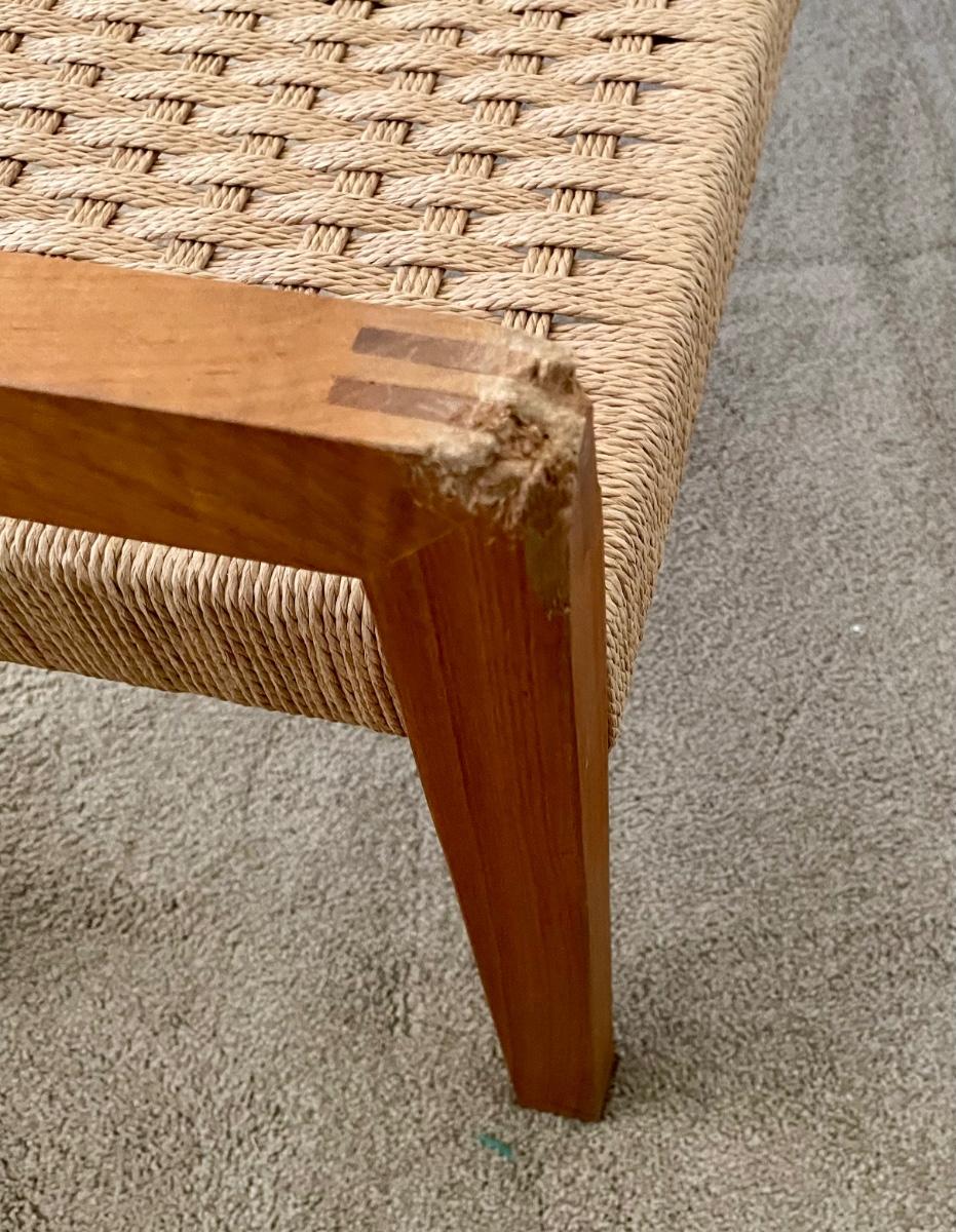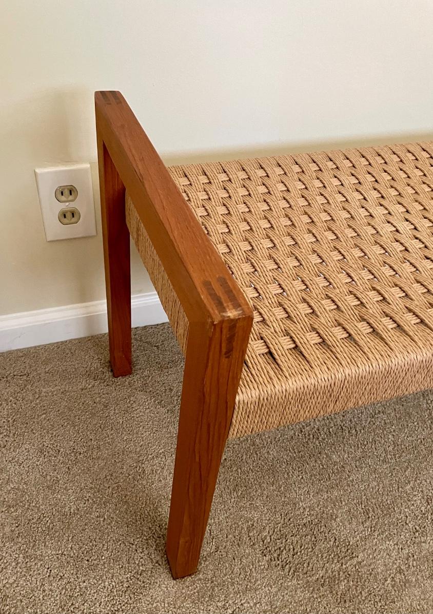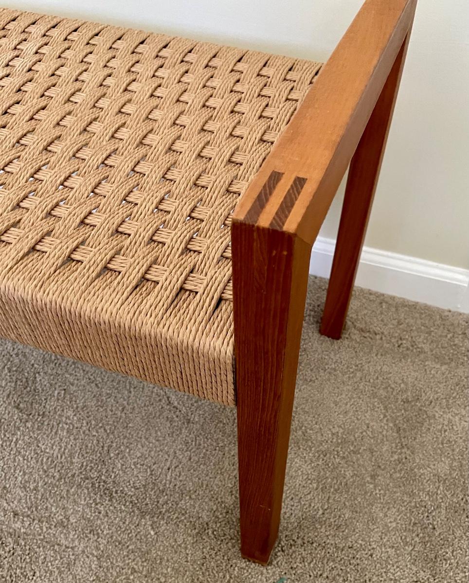 Sun Cabinet Company Mid Century Scandanavian Modern Style Teak Wood & Woven Cord Twine Rope Bench Seat