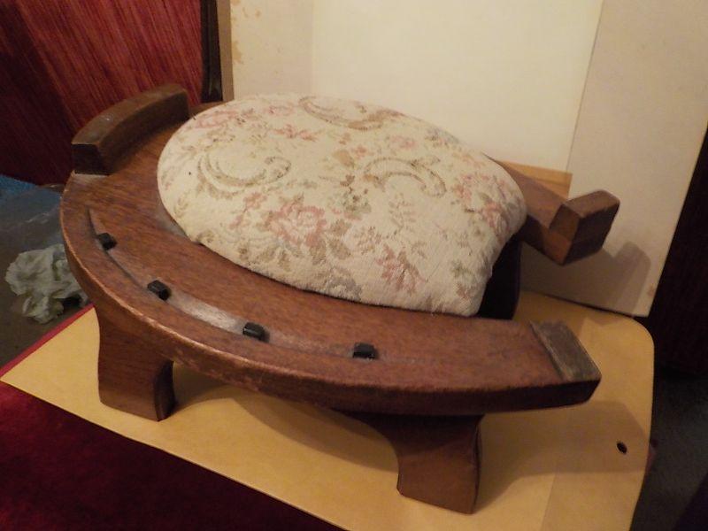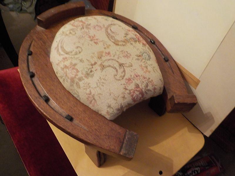 One of a kind a foot stool of a horse shoe. Well made 16 x 10 x 6". .