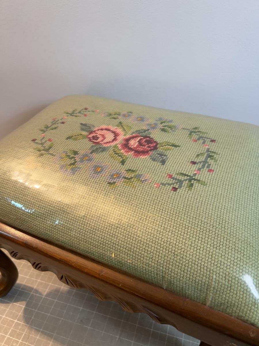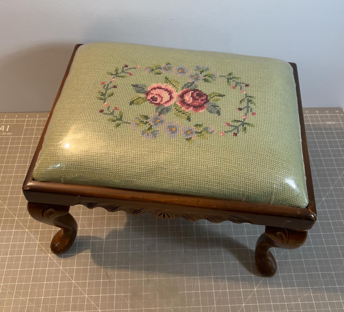 Foot Stool Needle Point Sage and Floral