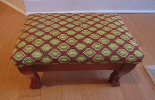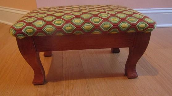 Foot Stool with Pendant Pattern Cross Stitch Cushioned Top 14"x10"x8"