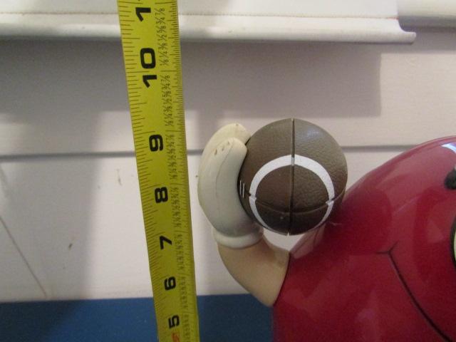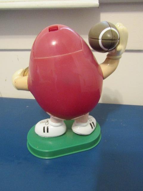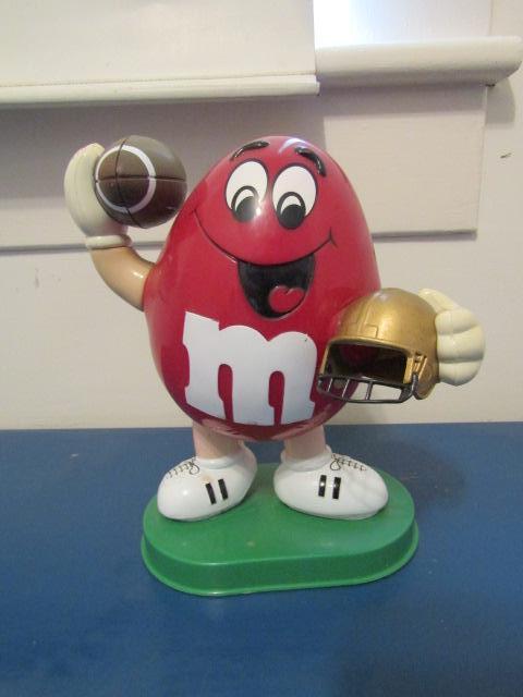 Football Themed M&M's Candy Dispenser. Piece has some fading on top.