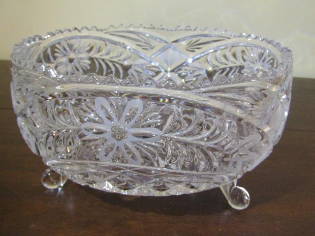 Footed, Tooth-Edge Crystal Bowl- Approx 8" in Diameter