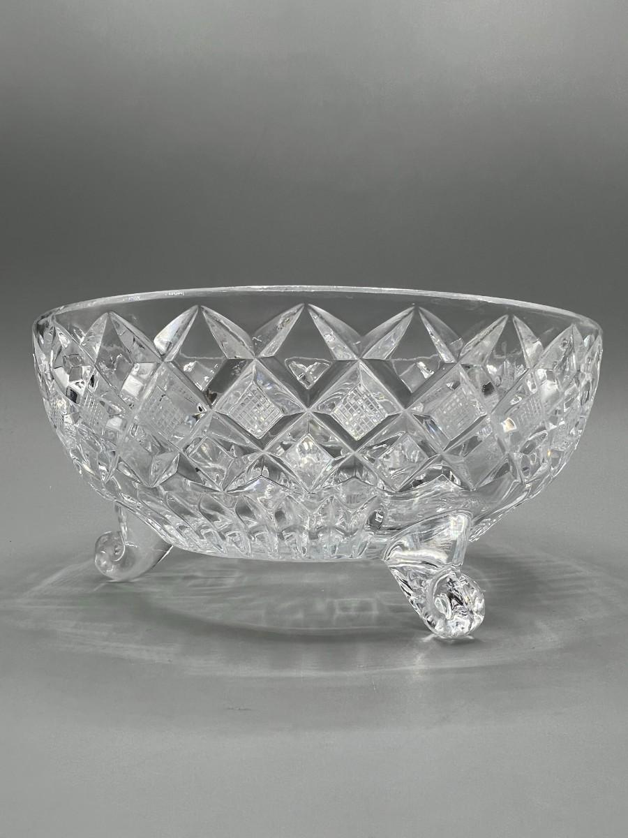 Footed Diamond Pattern Cut Crystal Small Bowl Candy Dish