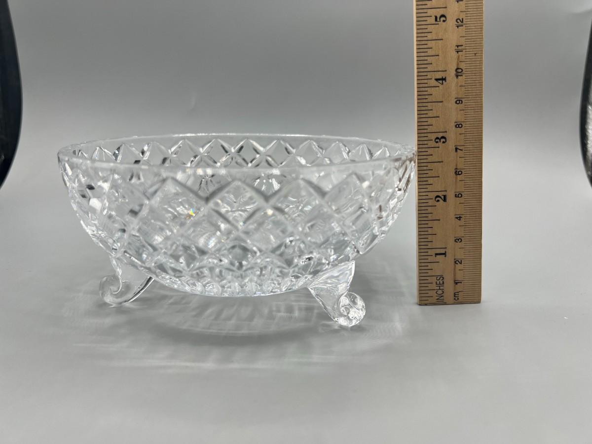 Footed Diamond Pattern Cut Crystal Small Bowl Candy Dish. In good condition. About 6" size.