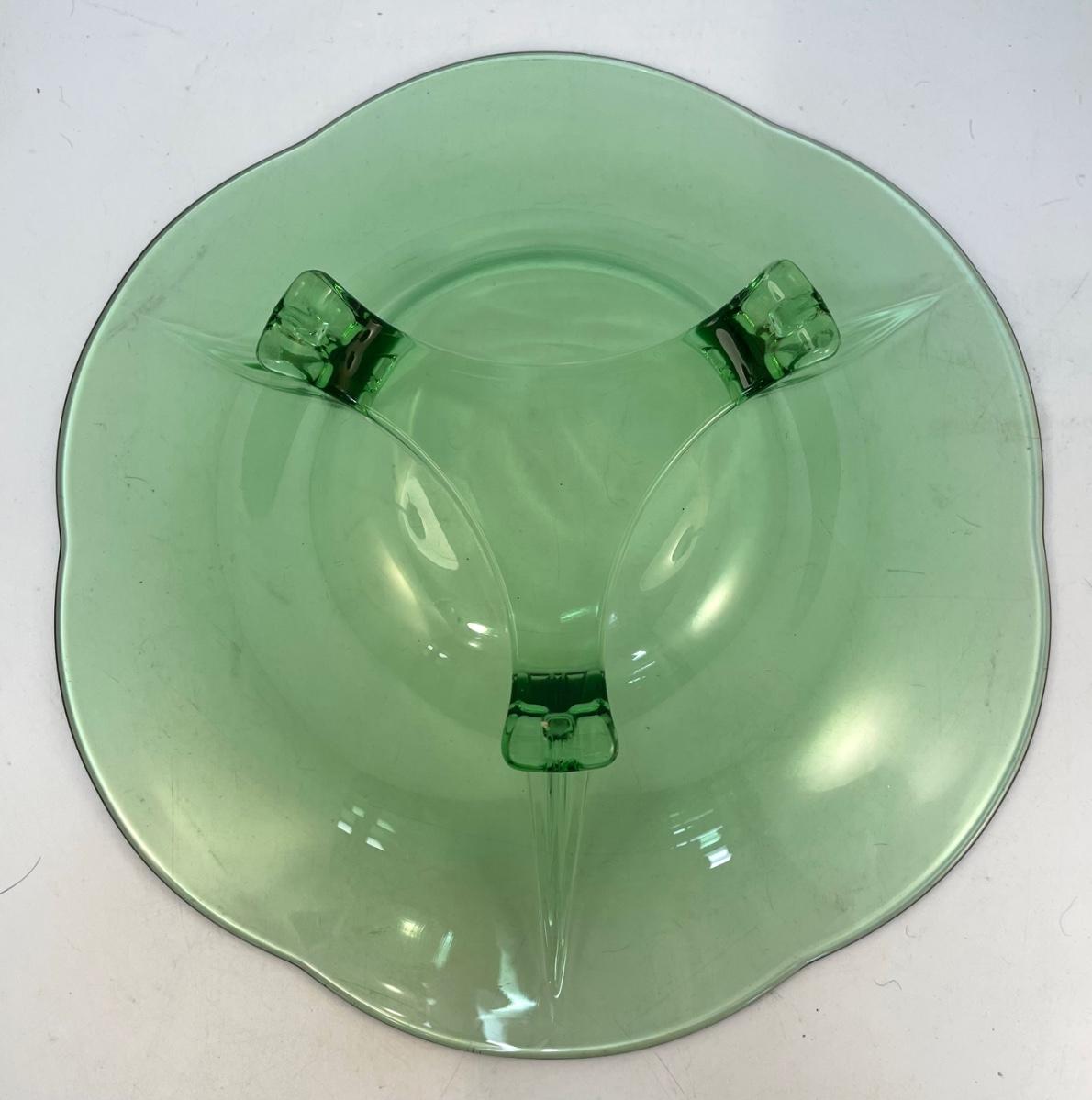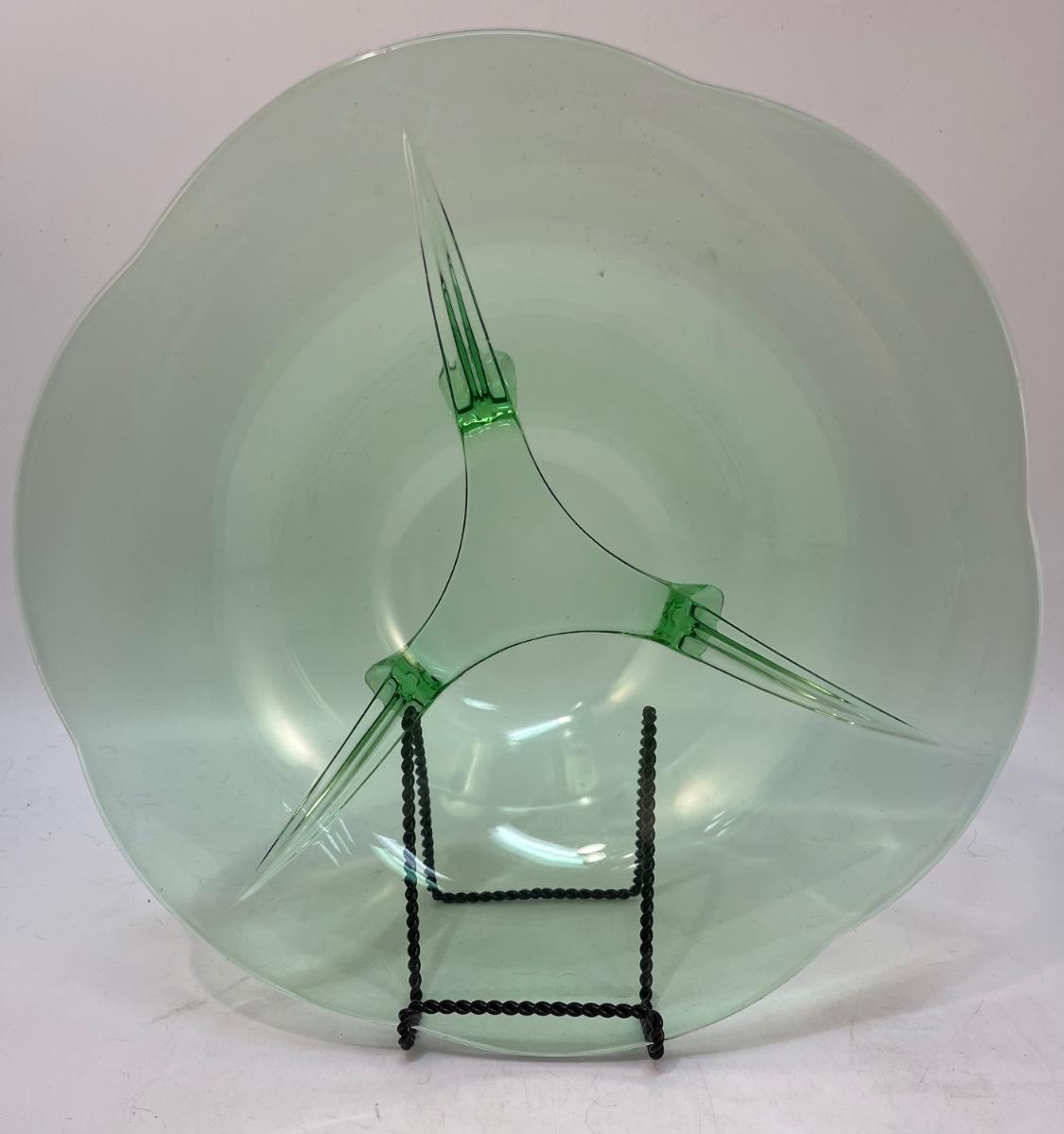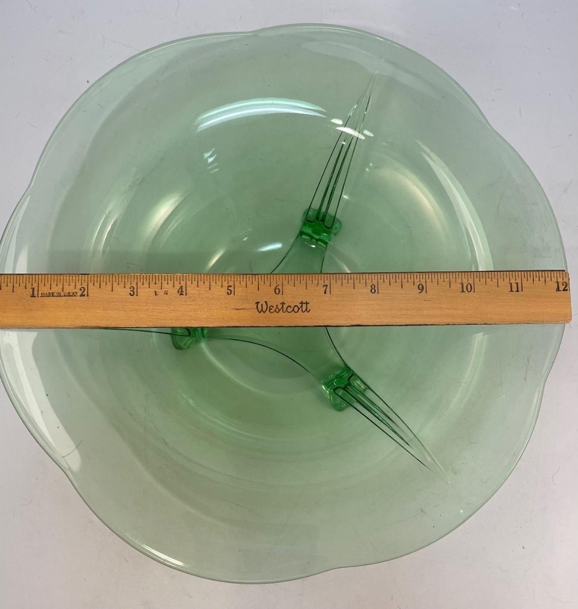 Footed Green Depression Glass Console Bowl. In good condition. 12" diameter.