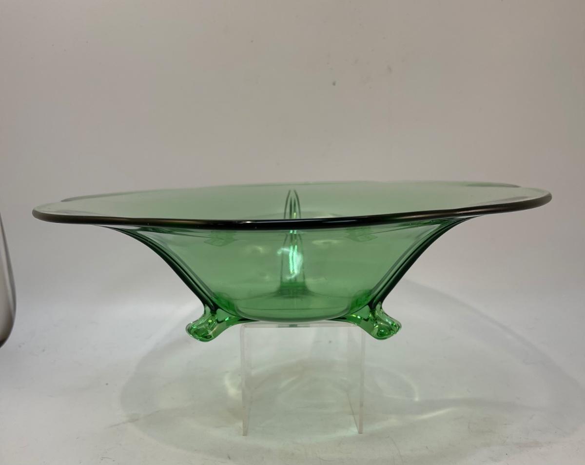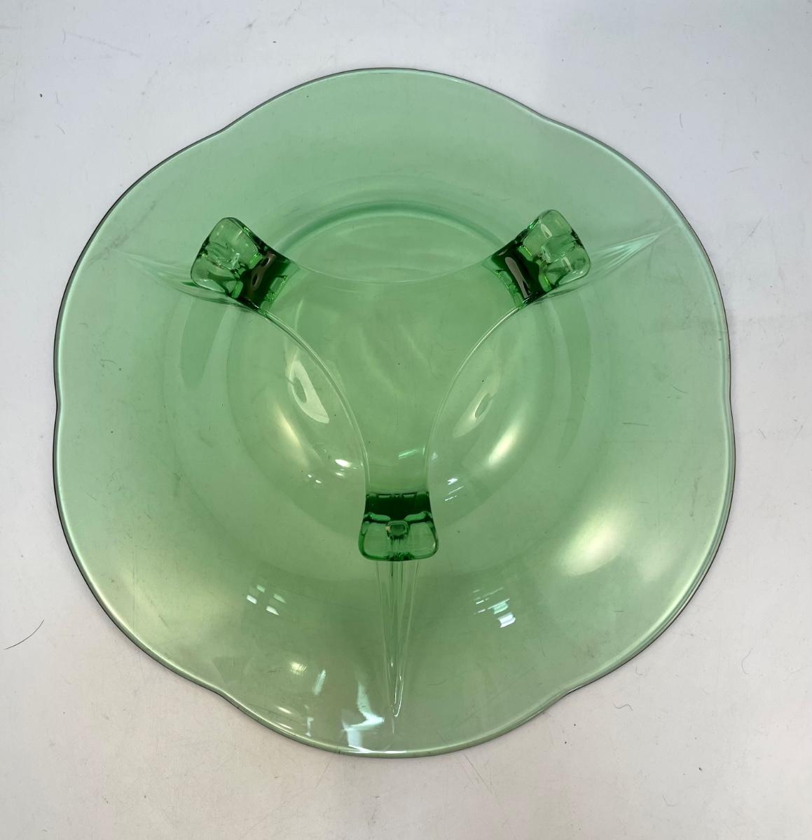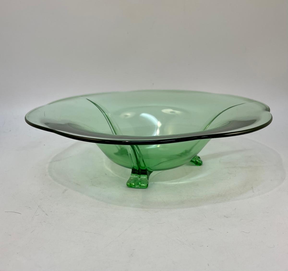 Footed Green Depression Glass Console Bowl. In good condition. 12" diameter.