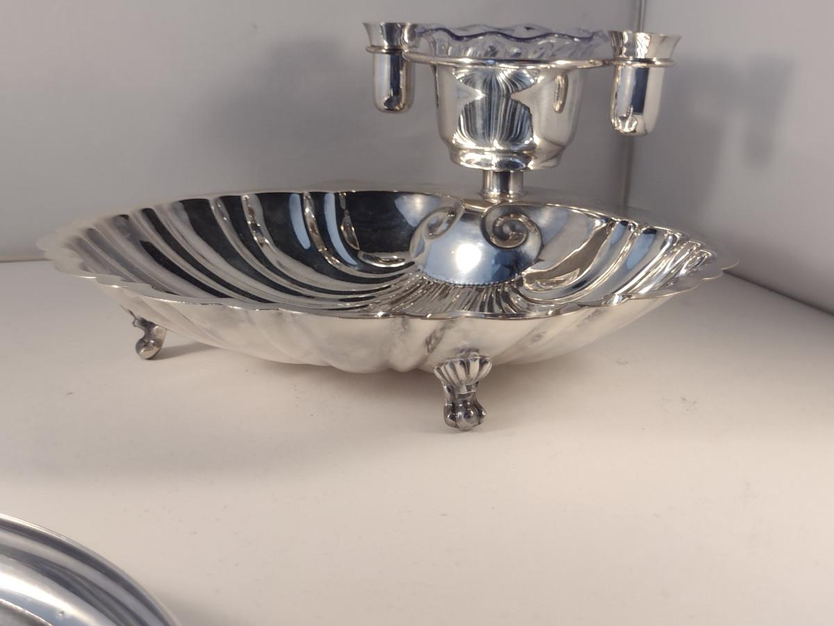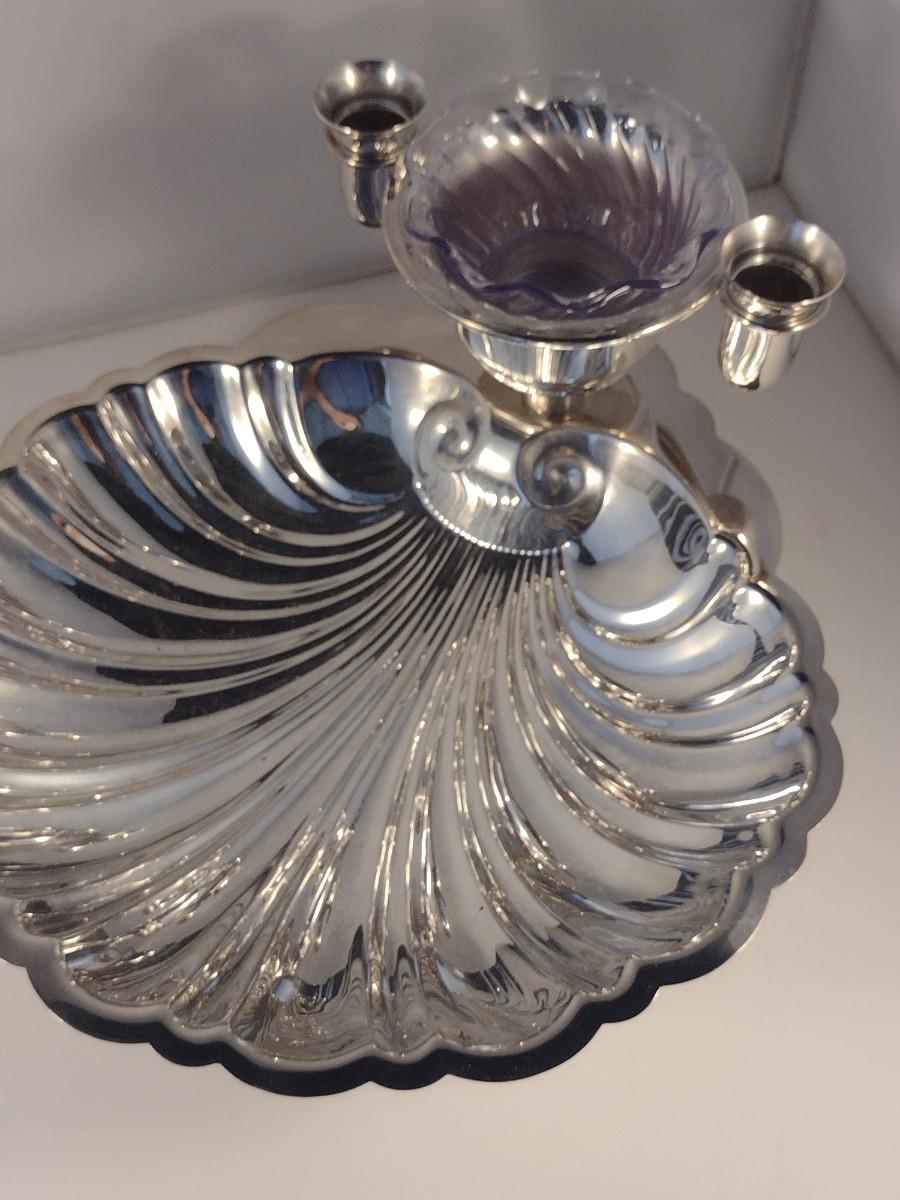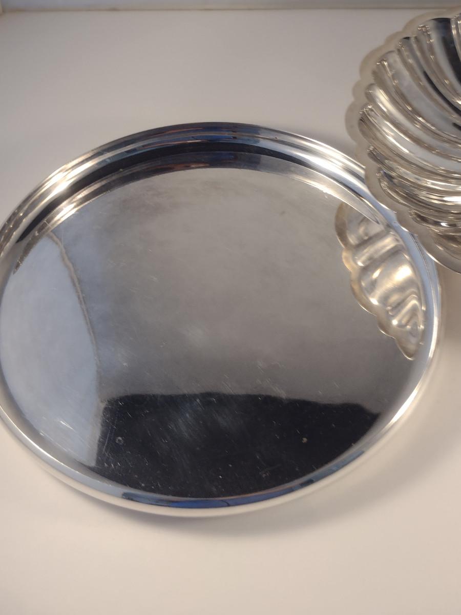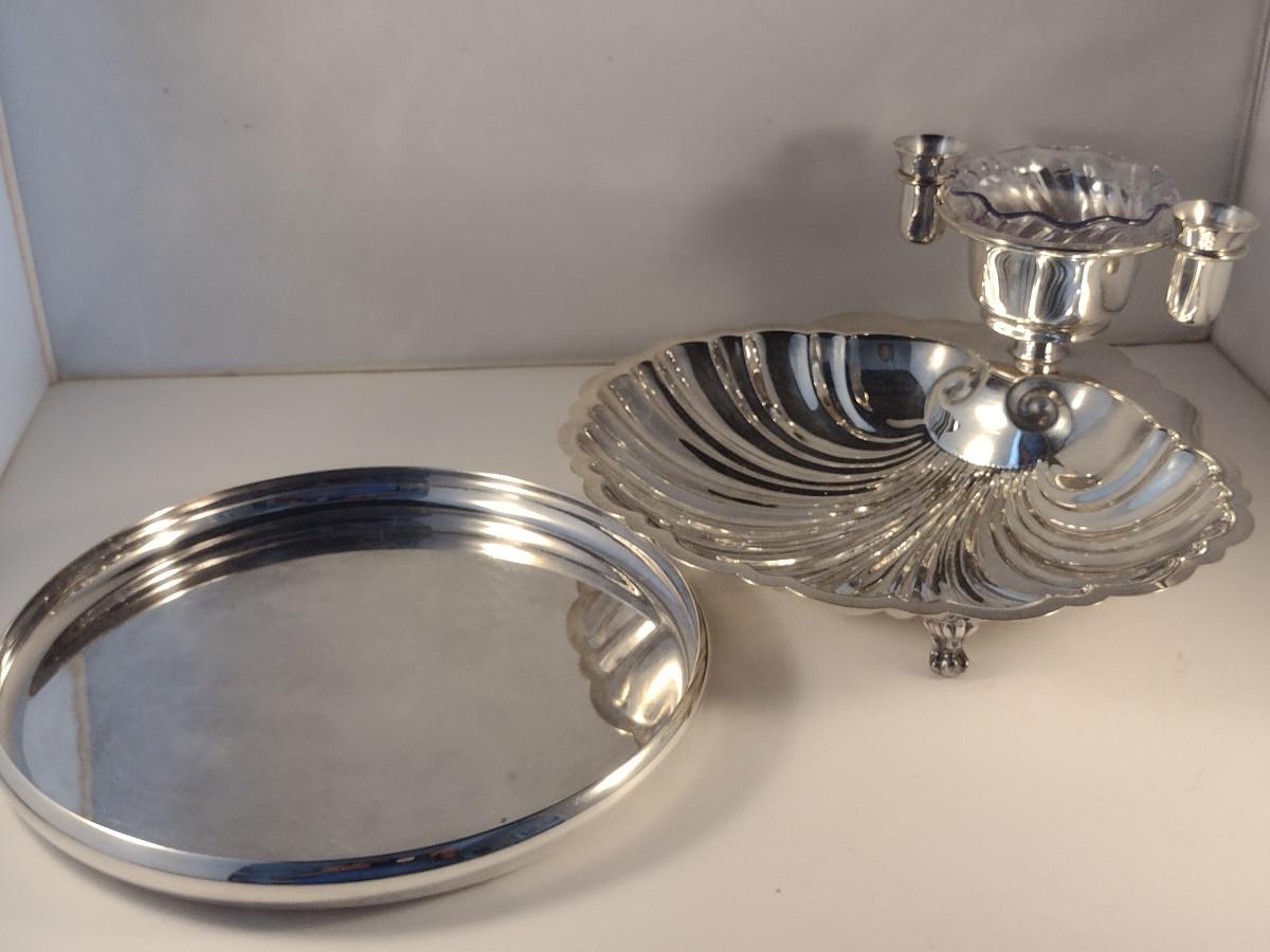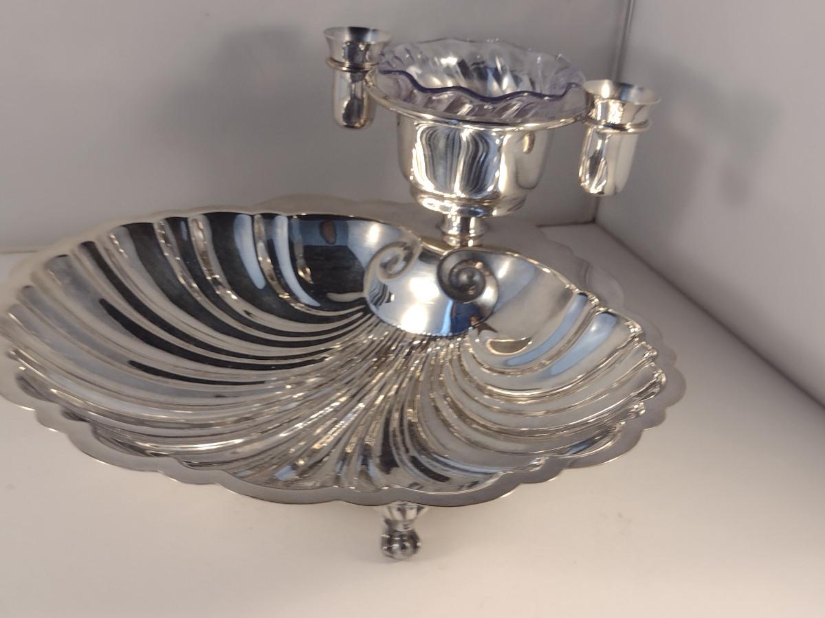 Footed Half Shell Seafood/Shrimp Serving Dish and Metal Tray