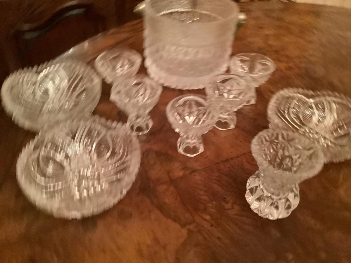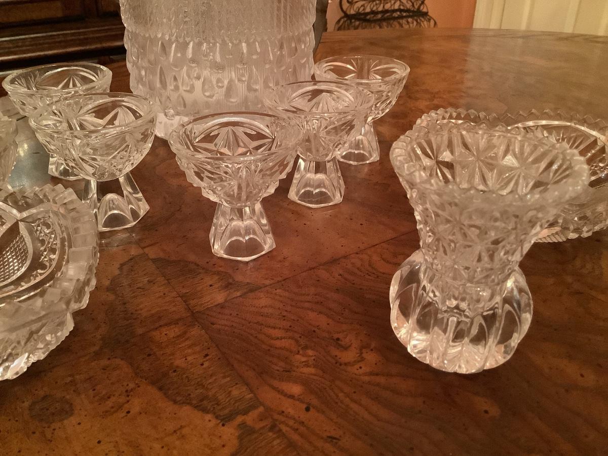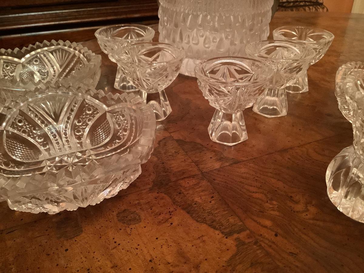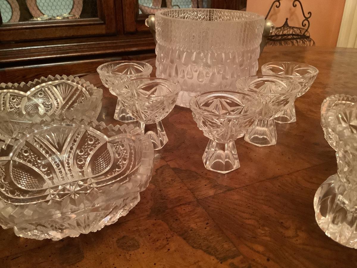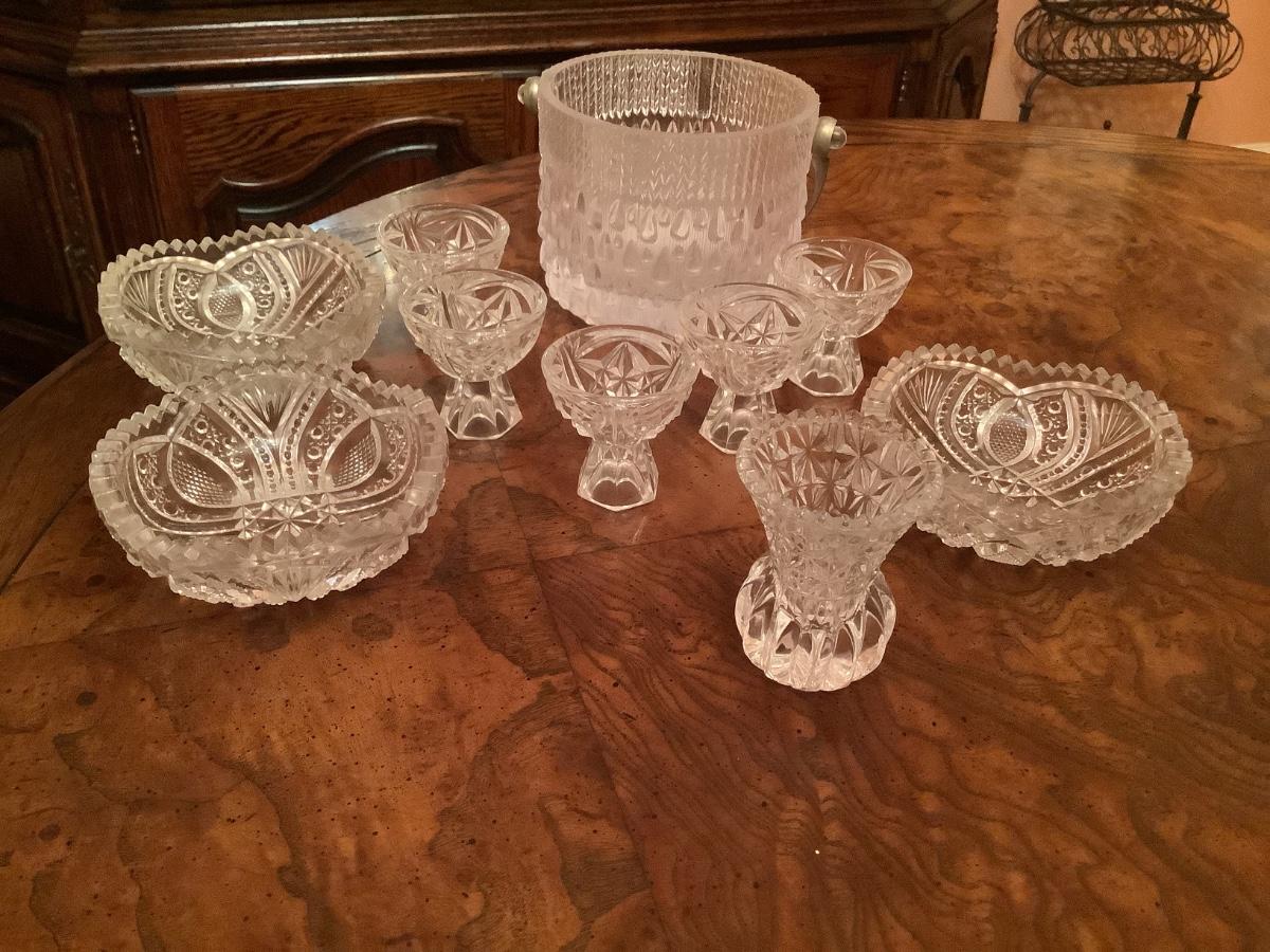 Footed salt cellars, toothpick holder, ice bucket, bowls