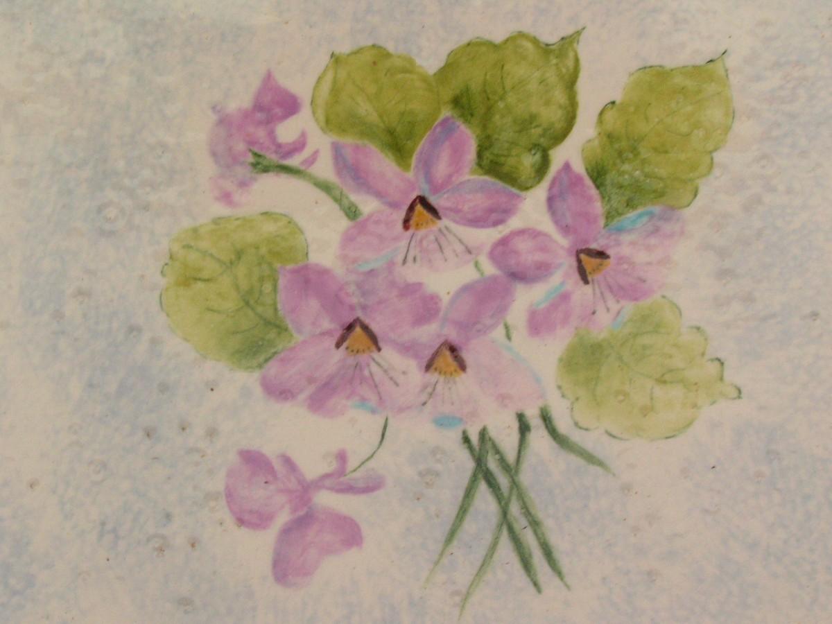 Footed square flat dish. Glazed ceramic, not labeled, origins unknown. About 9-1/2" square.