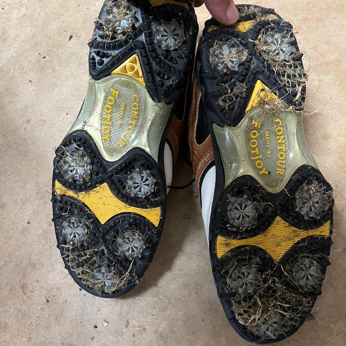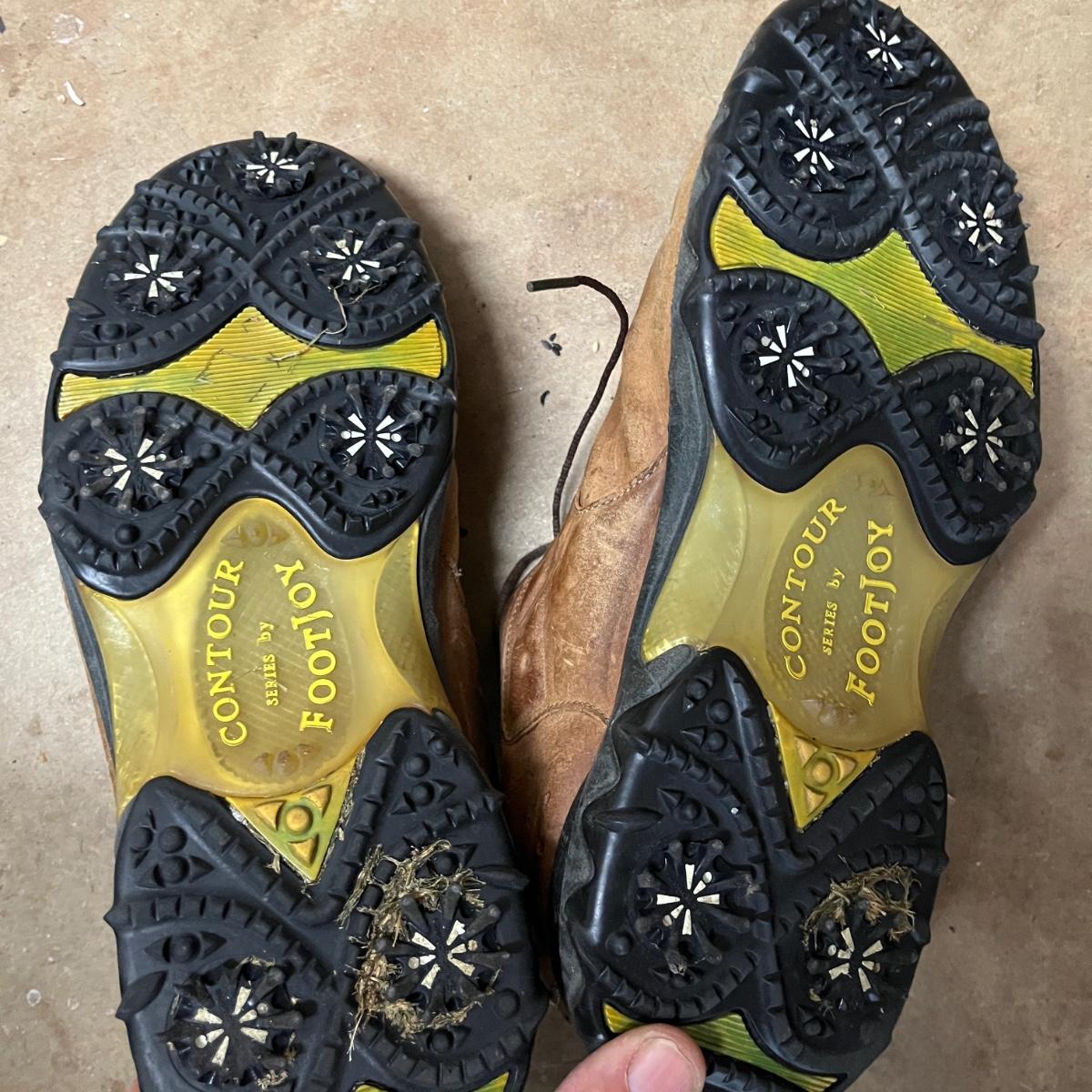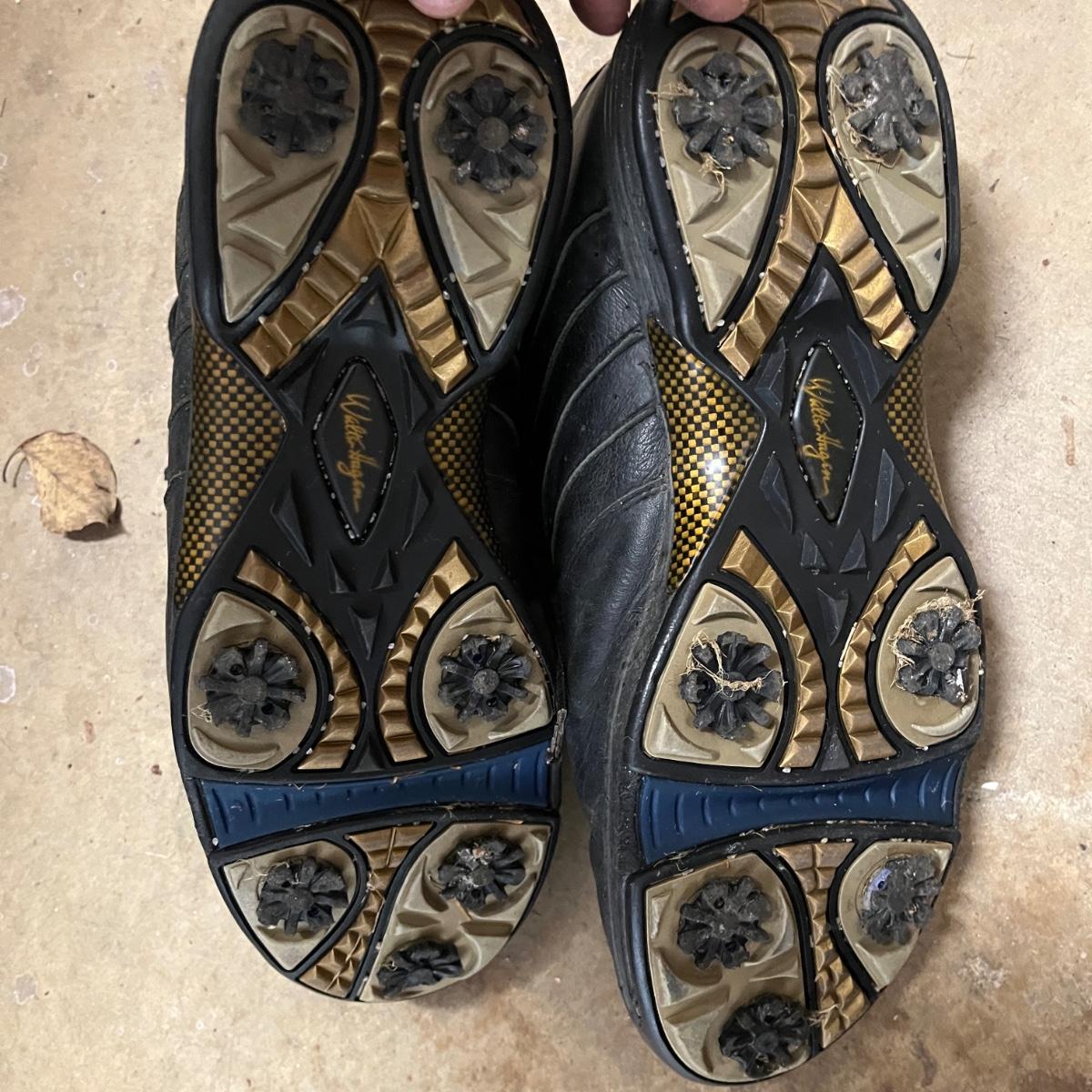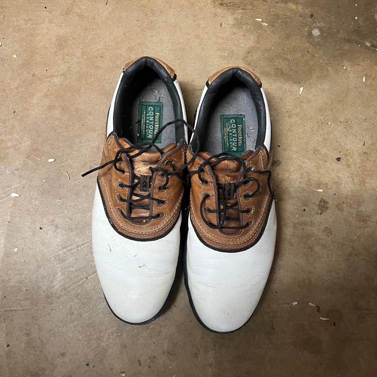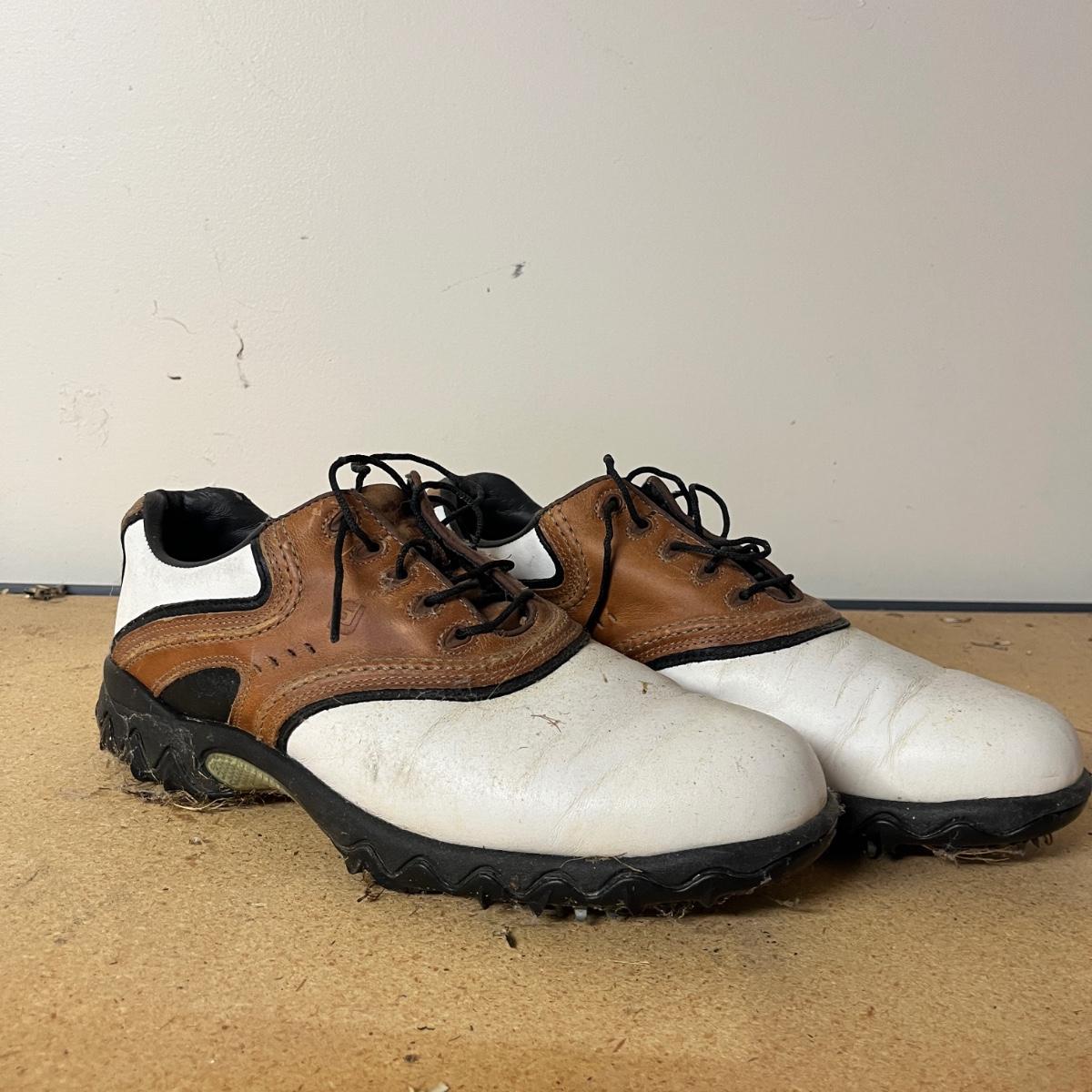 Lot includes three pair of Footjoy size 10.5 golf shoes, NIB Adidas Golf shoes size 11 and a pair of Walter Hagen golf shoes size 10.5.