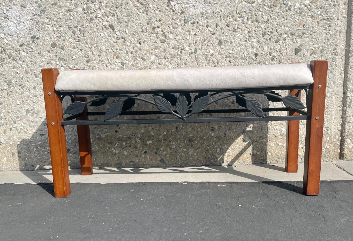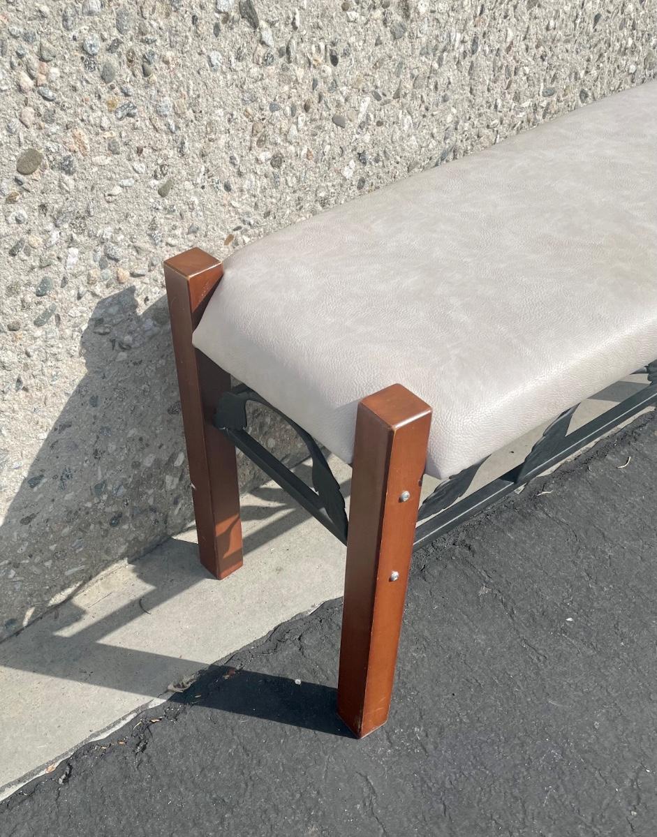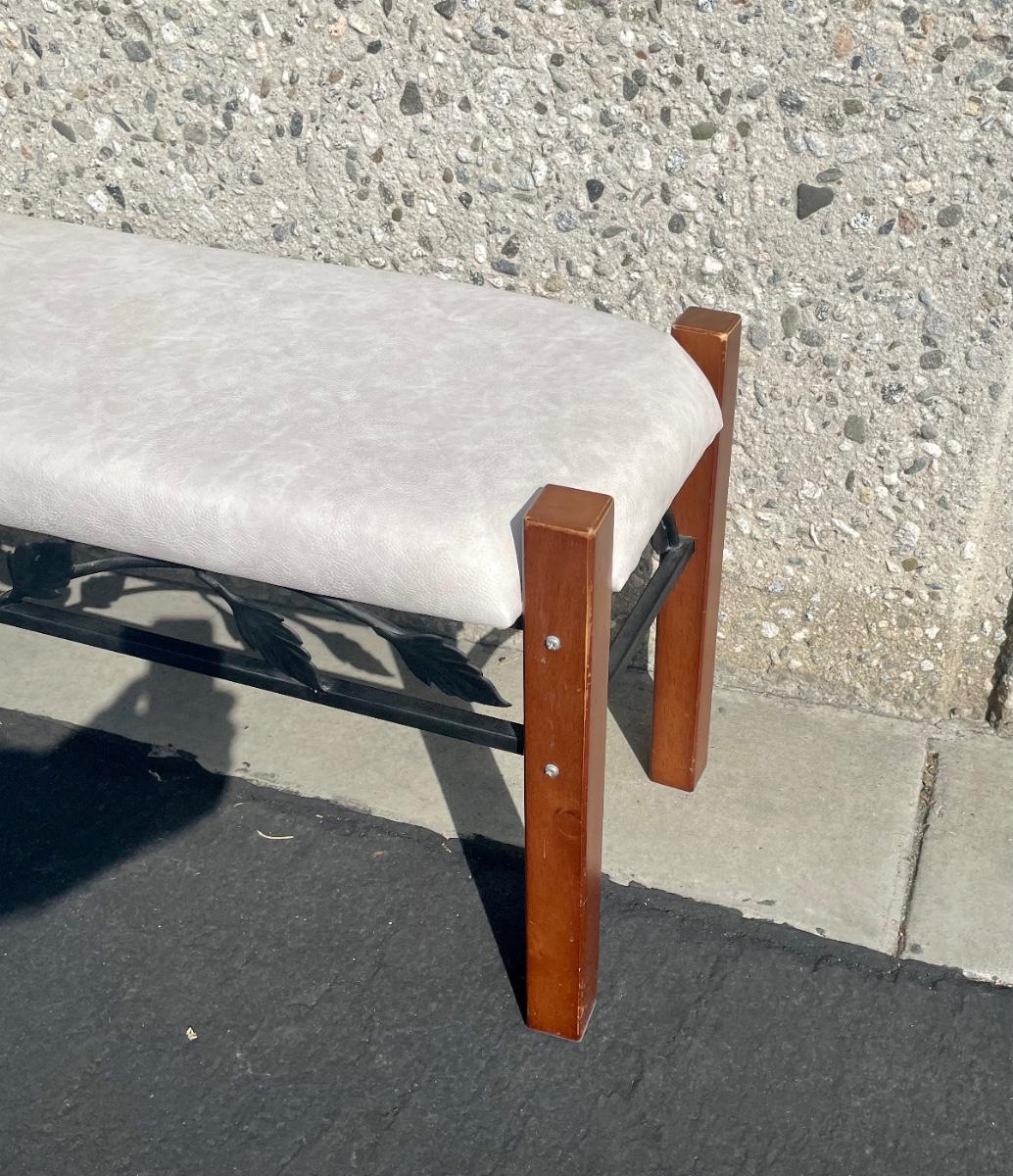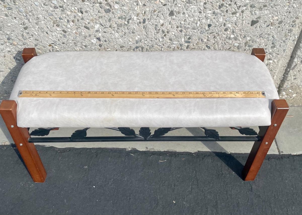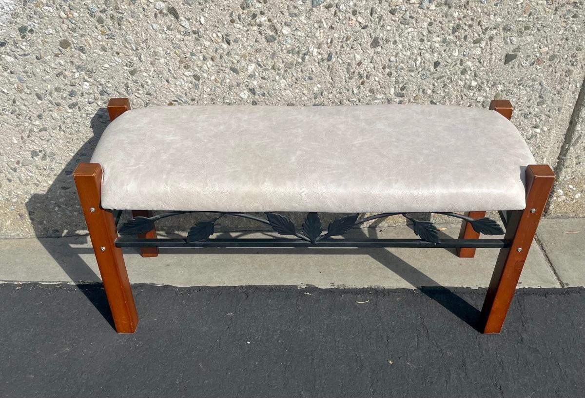 Wood and Metal Cushion Bench Seat for Entryway End of Bed Extra Seating. In good used condition. A little over 36" length.