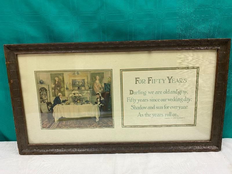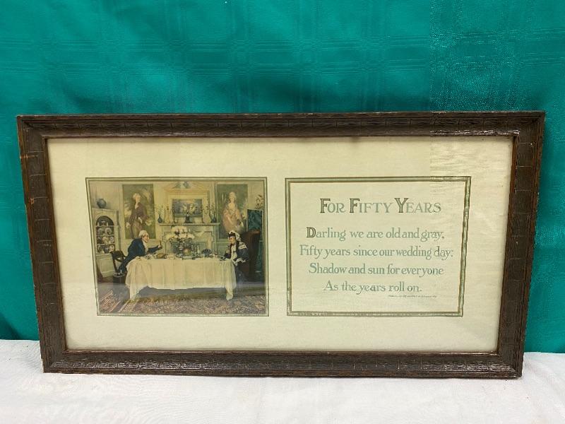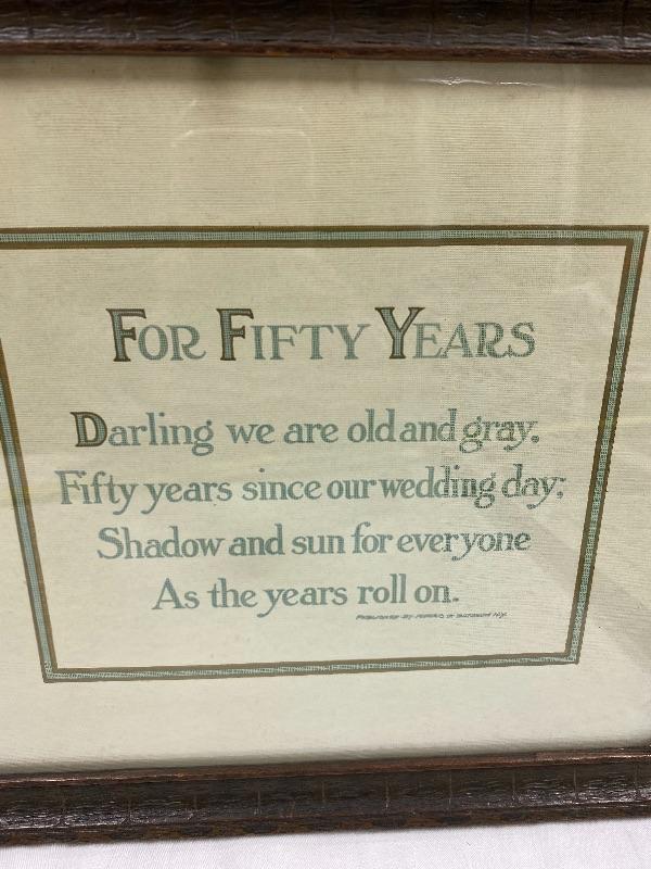 "For Fifty Years" wall art. Measures roughly 22"x12". Frame has signs of age.