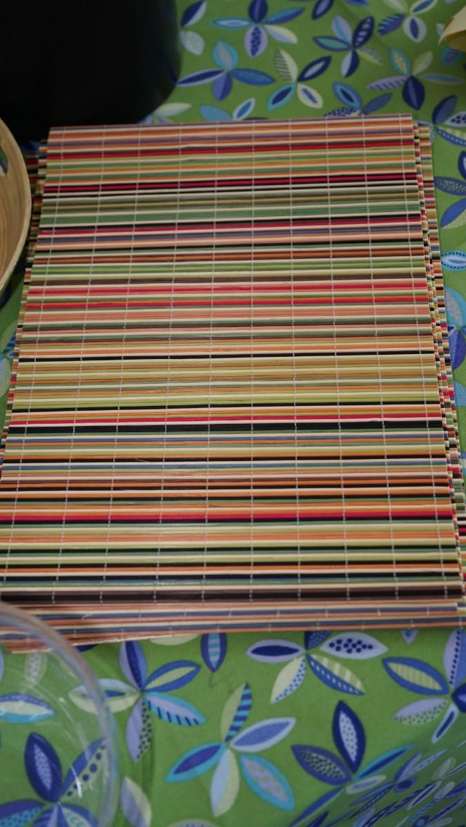 This grouping consists of 8 placemats of bamboo and colored in MCM colors