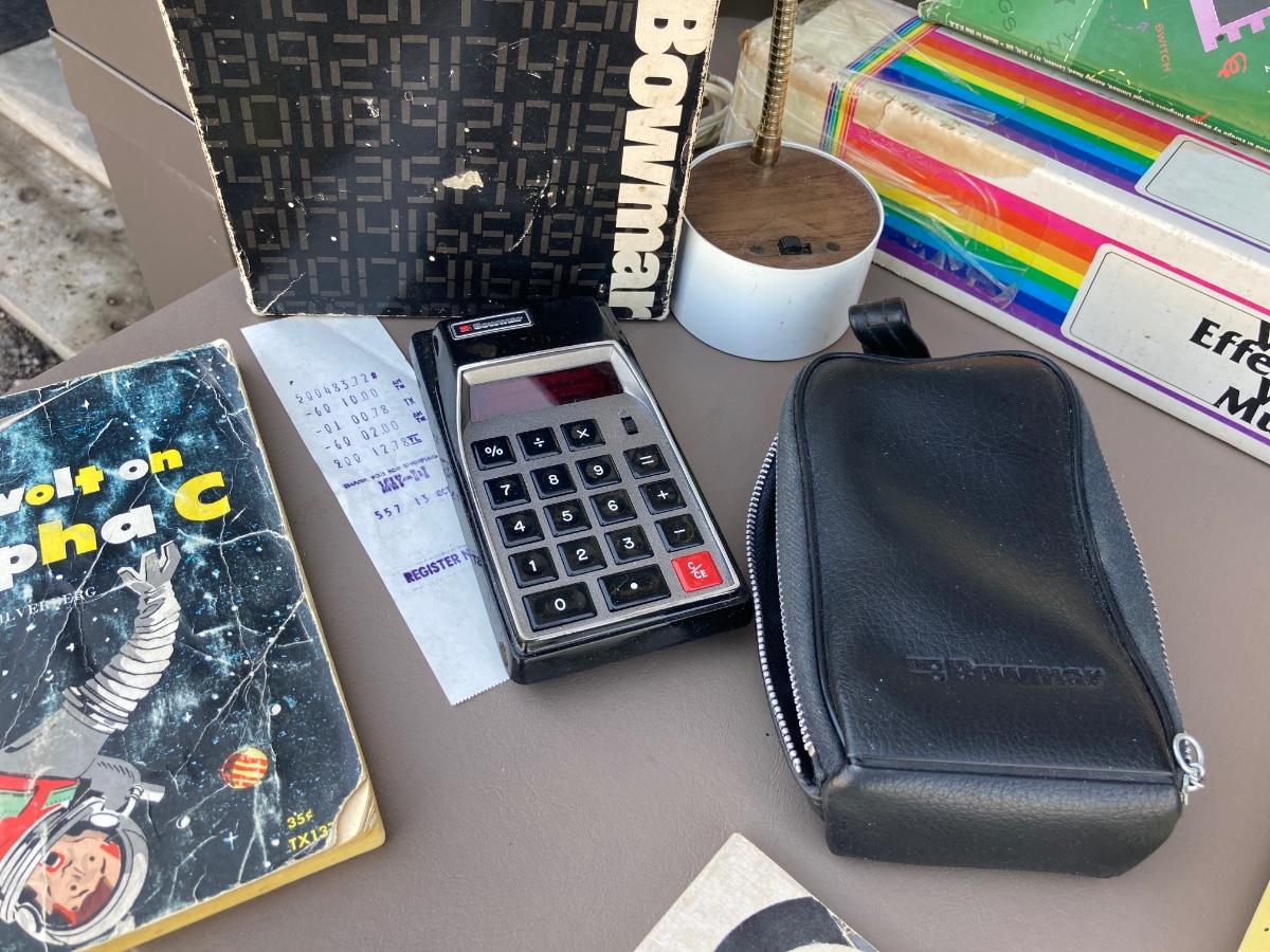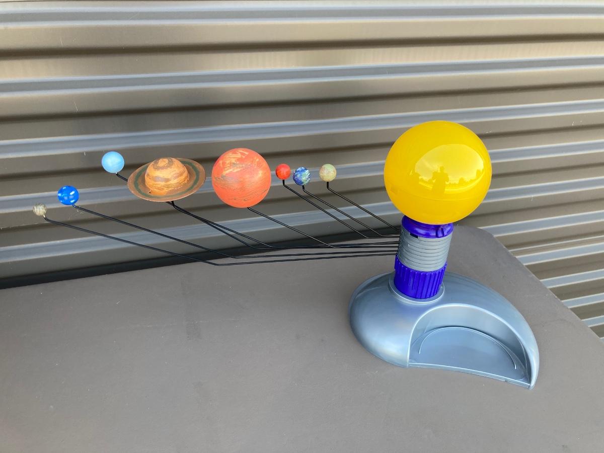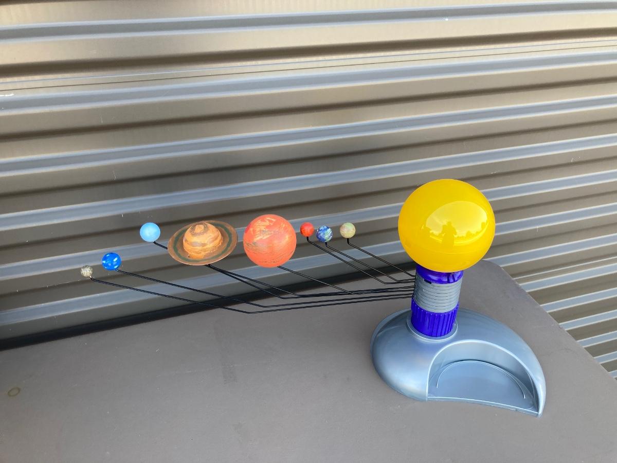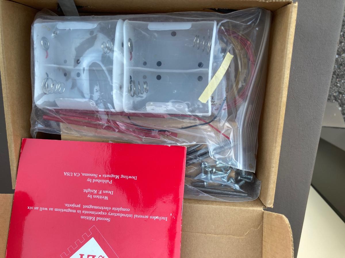 There’s a nifty planet 🌎 thing that lights up, a retro calculator with original receipt, some cool old books, a big number Cosmo Alarm Clock, A really old telescope, I believe it may be missing the eye piece. Good for conversation if not anything. Huge wall Space Wall Mural, looks like it’s been used but not with wallpaper glue. I didn’t take it out of the box because I was afraid I wouldn’t be able to put it back in there. And an electromagnet science set! Big lot of goodies!