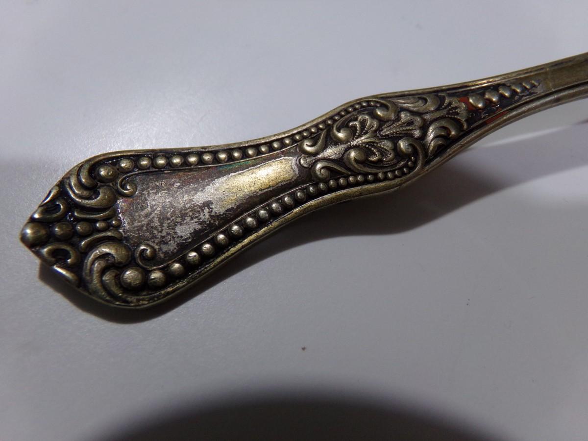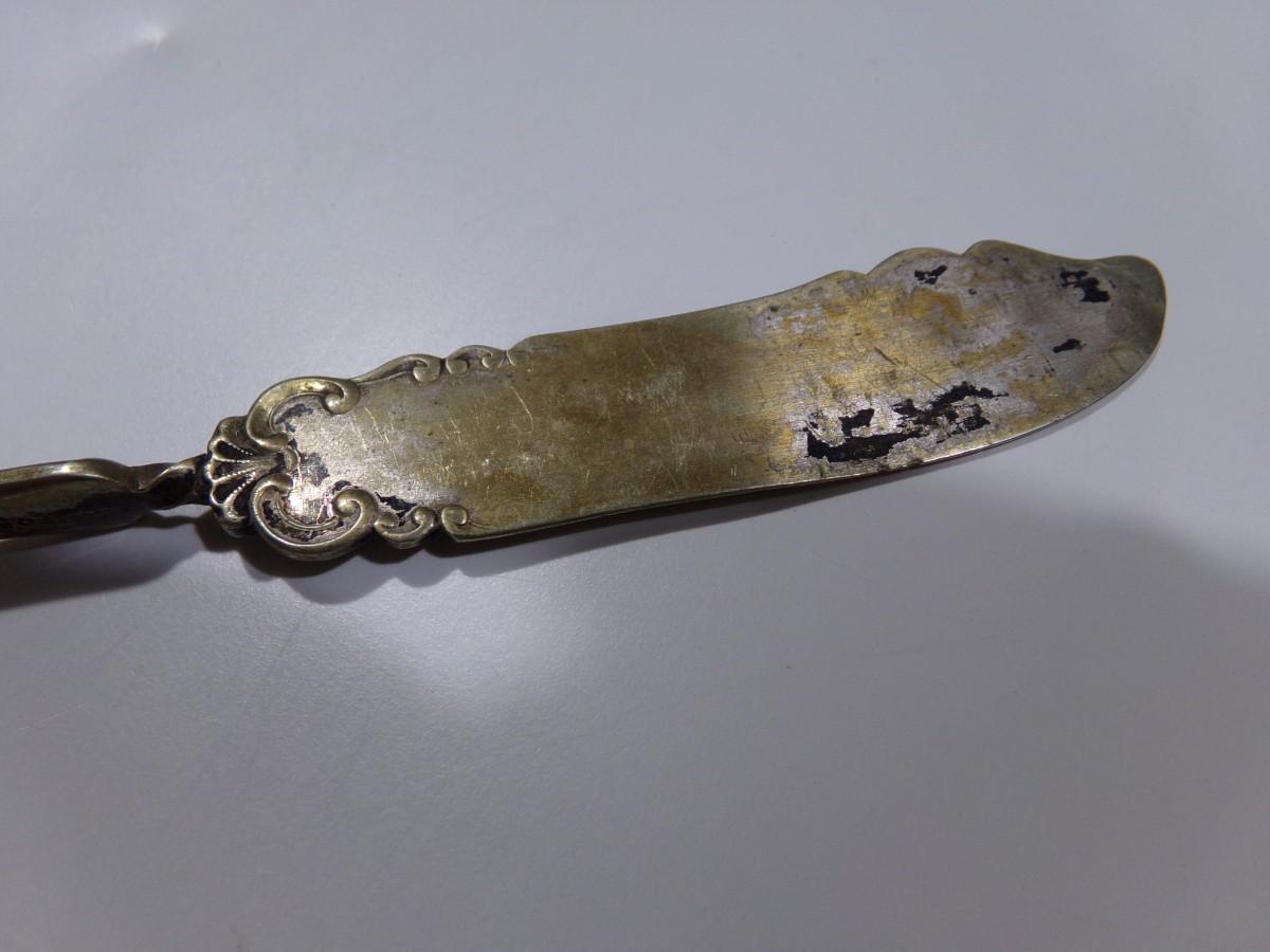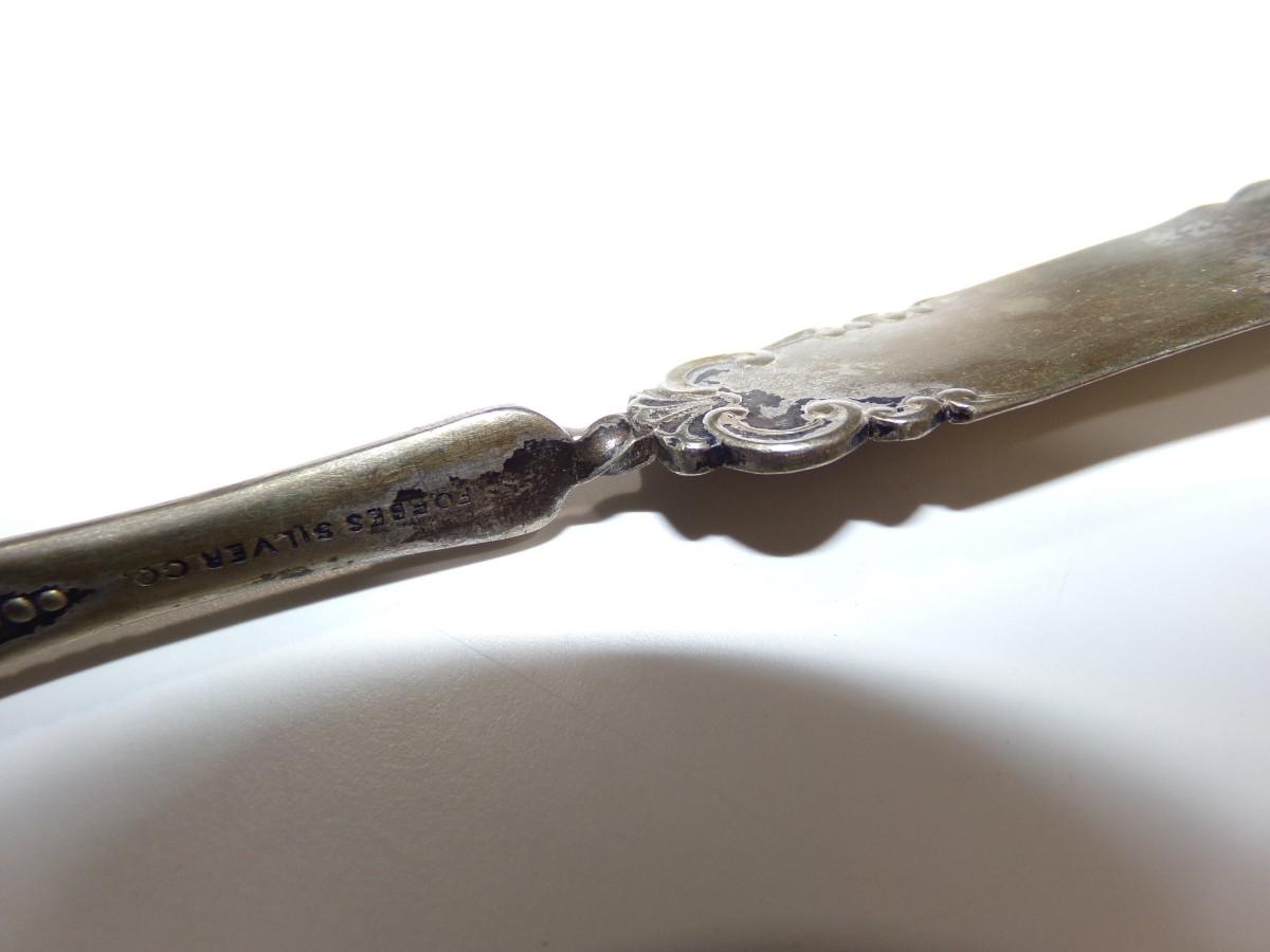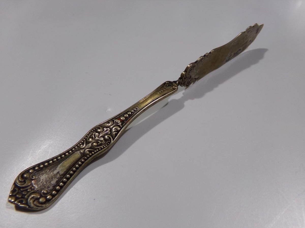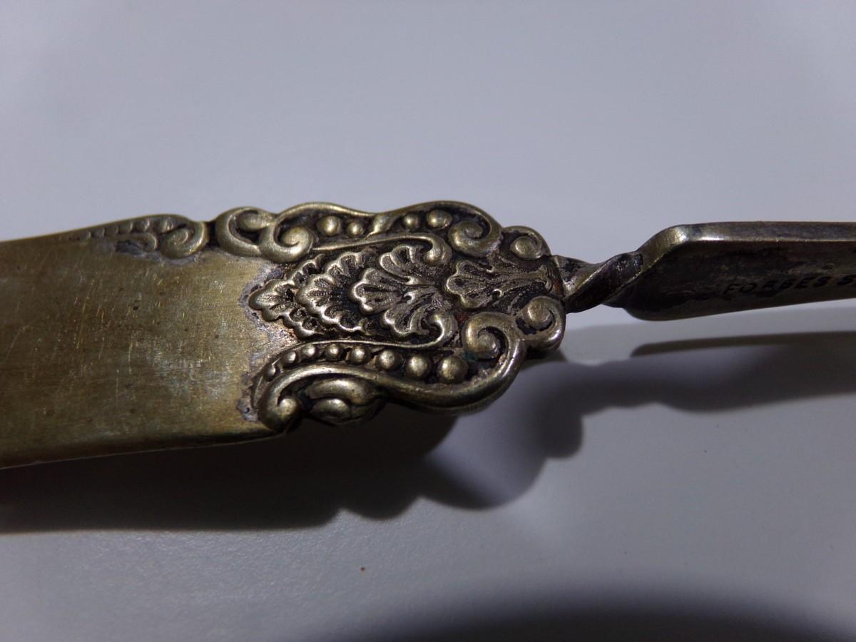 Forbes Silver Co. butter server, silver plate. Very extravagant design with 90o twist between handle and blade and ornate 1800s Victorian styling.