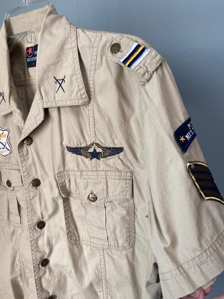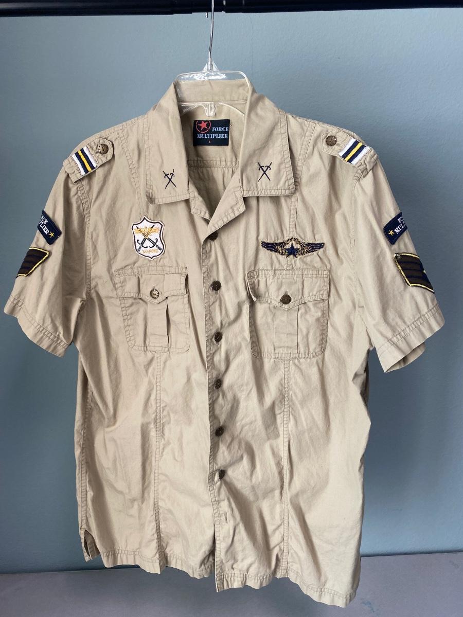 Force Multiplier Faux Military Patch Button Front Shirt Large