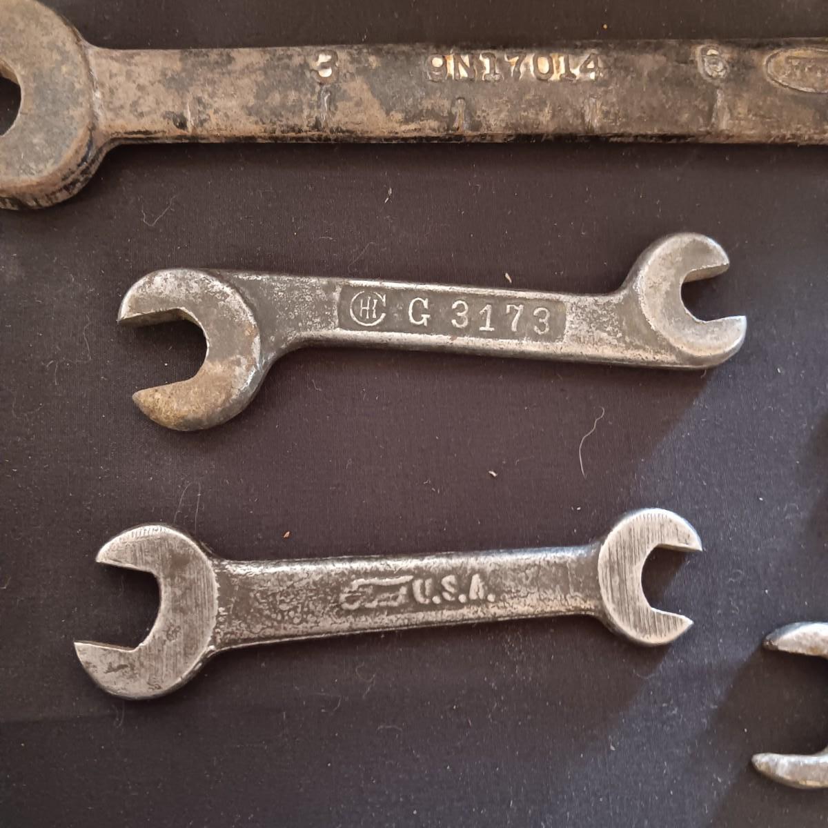 FORD COMBINATION WRENCHES, PIPE WRENCH AND A HANDLE