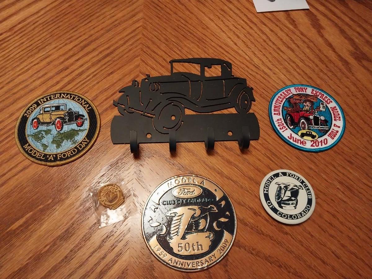 FORD MODEL A KEY HOLDER, PATCHES, PIN AND MEDALLION