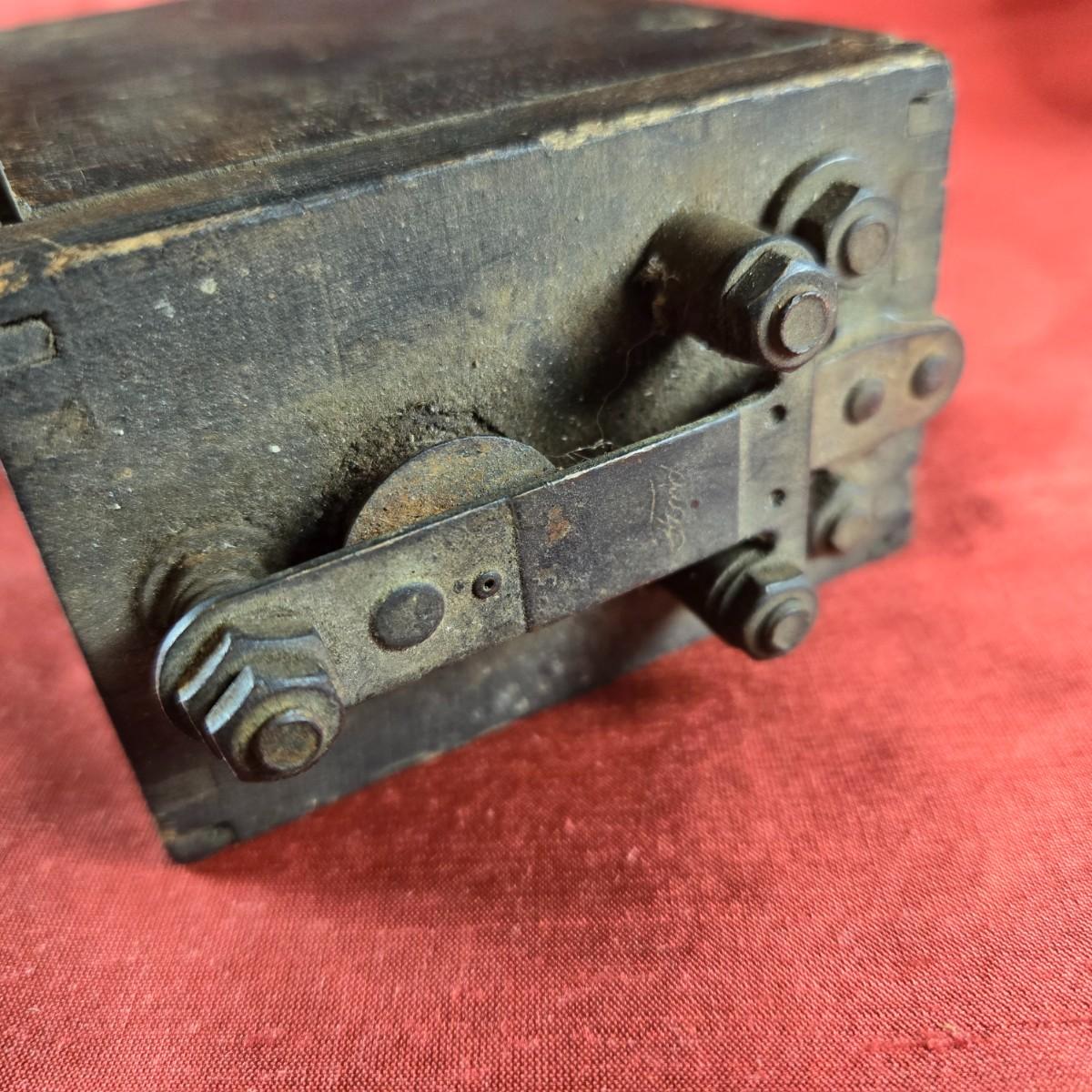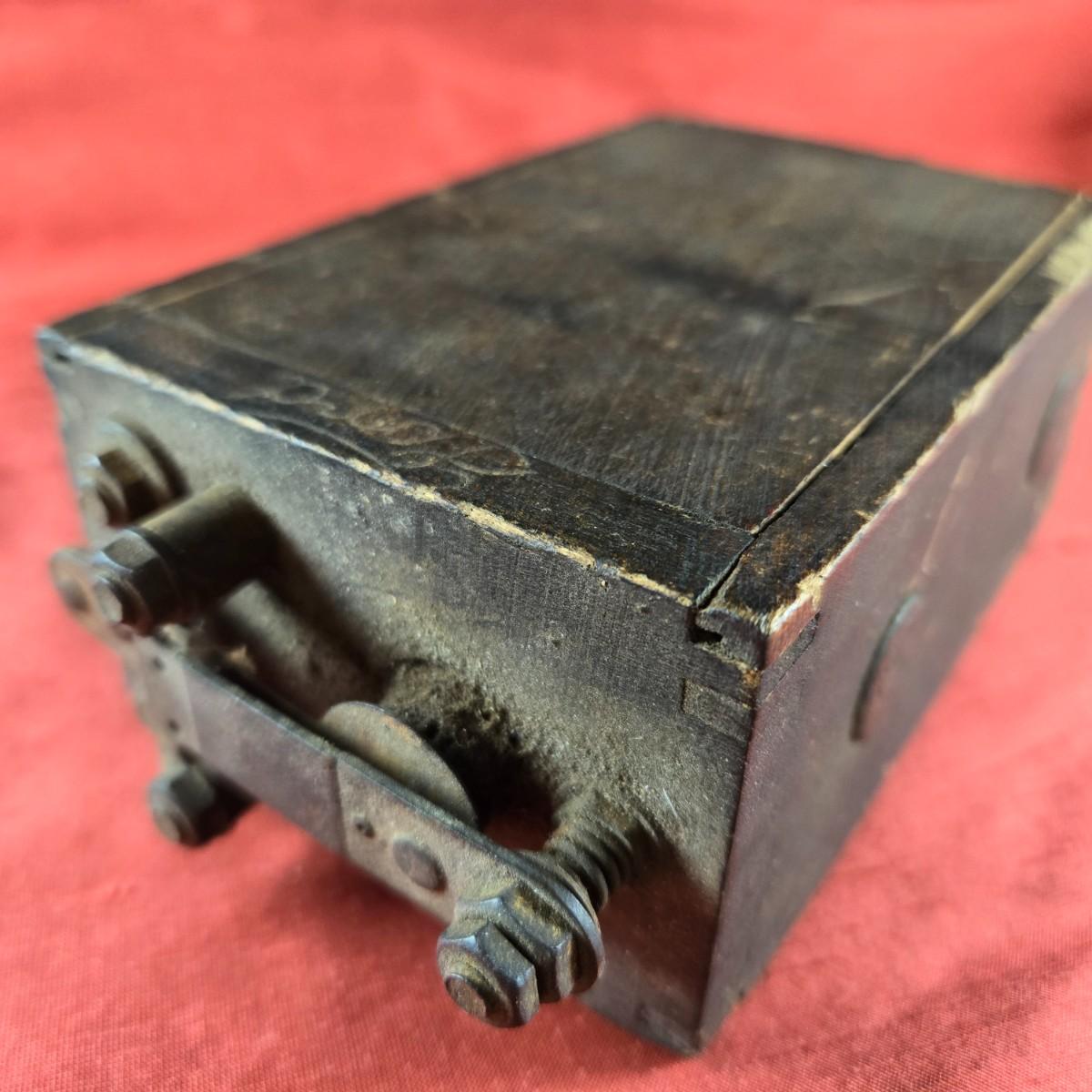 This auction lot is for a Ford Model T Ignition Coil Battery. This is one of our coolest find yet. It is an old Motel T ignition coil battery box. It is in it's found condition but it looks intact. The box is about 3-1/2-inches wide X 2-inches tall X 5-inches long plus the exterior hardware on the end.